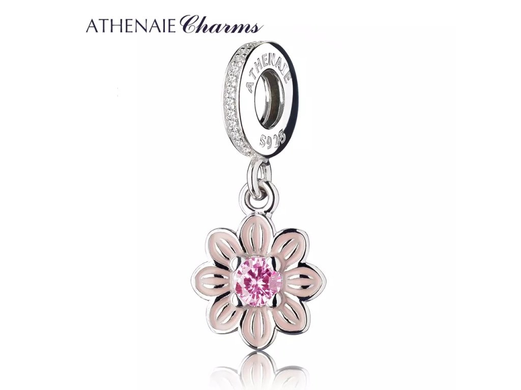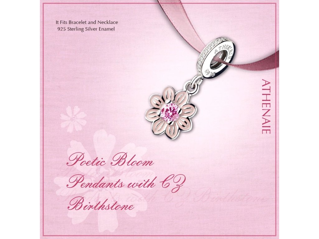- Luxusný strieborný visiaci prívesok v tvare romantického kvetu s ručne nanášanou ružovou glazúrou a brúseným kameňom v podobe ružového zirkónu. Originálny design prívesku, kvalitné spracovanie a materiál, ručne dohotovené.