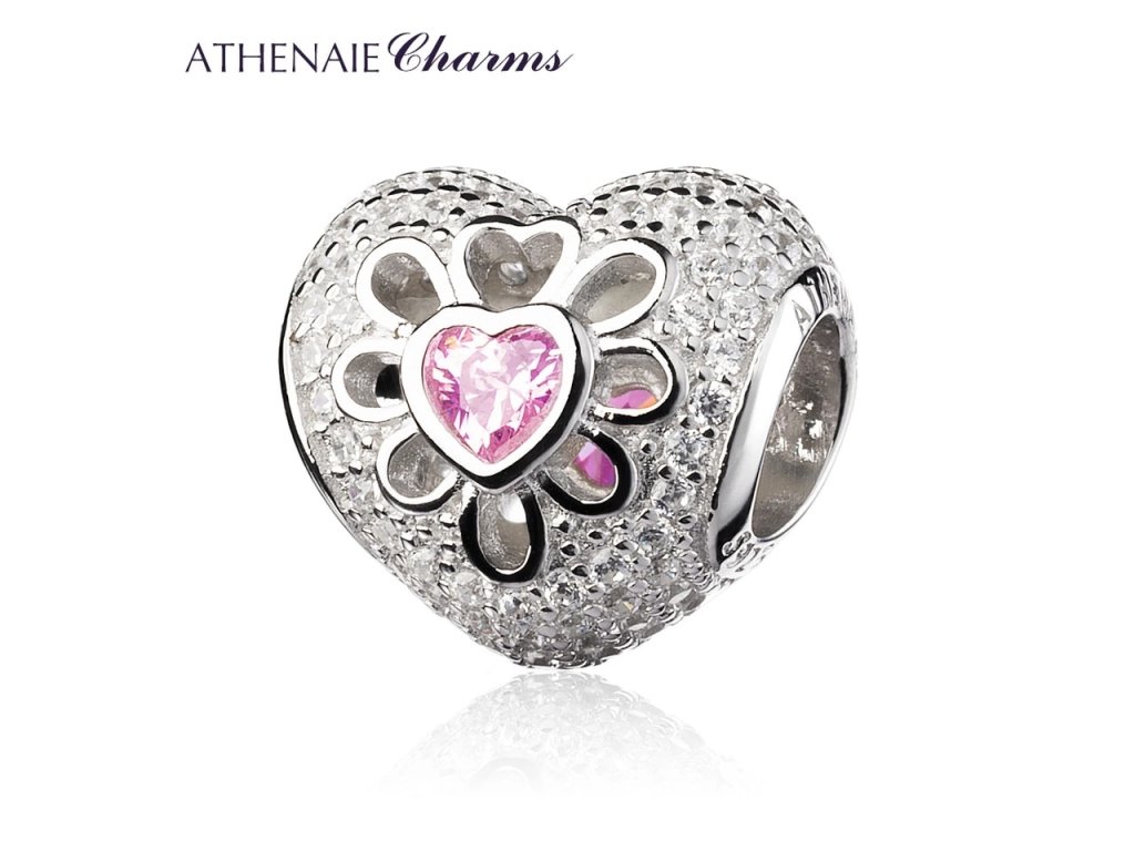 - Luxusný strieborný prívesok so zirkónmi v tvare srdca zdobeného žiarivým krištáľom v podobe ružového zirkónu. Originálny design prívesku, kvalitné spracovanie a materiál, ručne dohotovené.