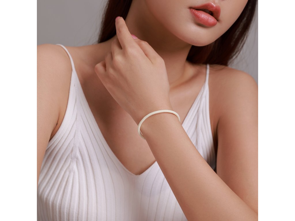 - Látkový nastaviteľný náramok na prívesky v krémovo bielej farbe. Originálny design náramku, kvalitné spracovanie a materiál, ručne dohotovené.