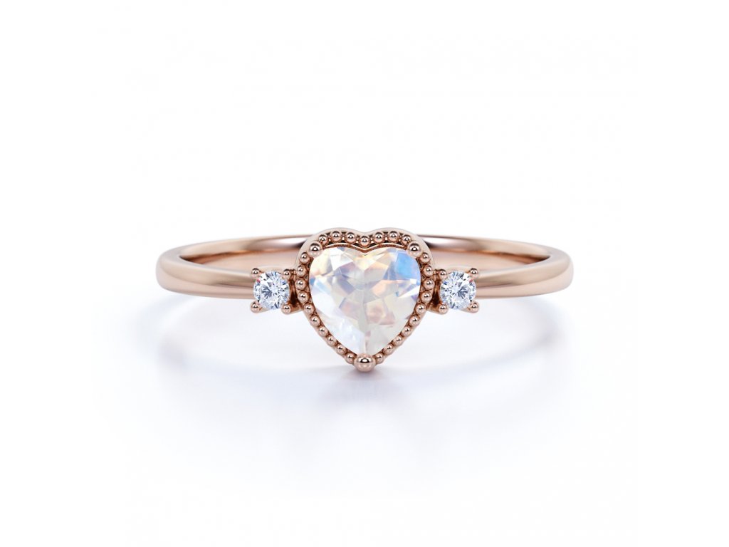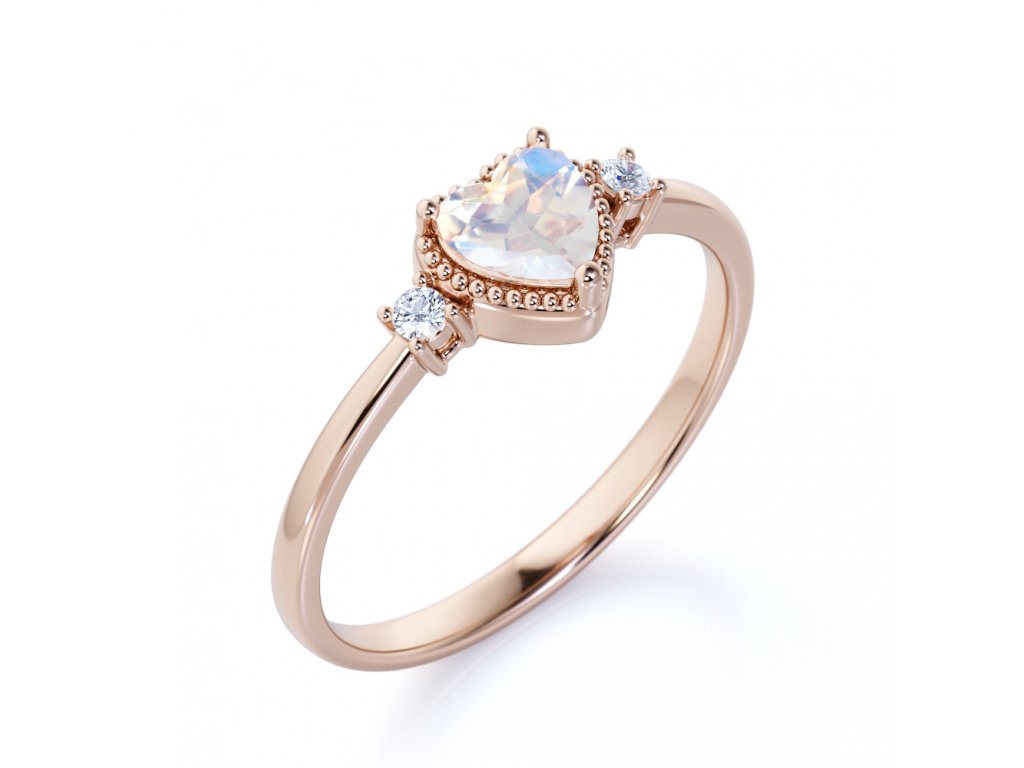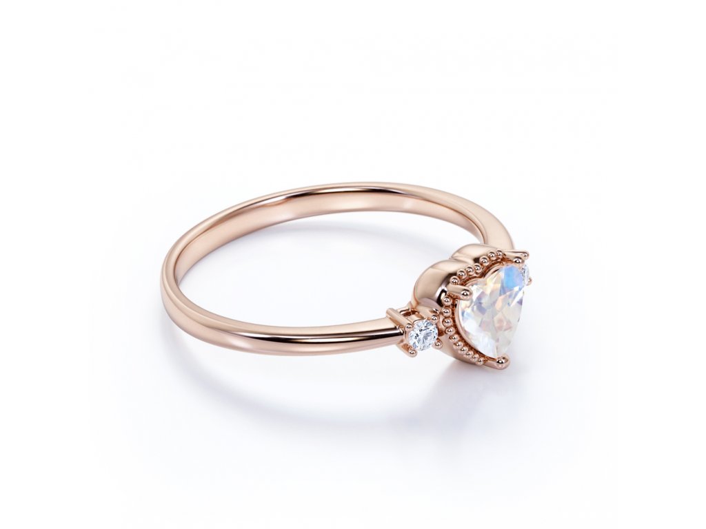 Emporial luxusný prsteň Mesačný dúhový kameň Heart 14k ružové zlato Vermeil