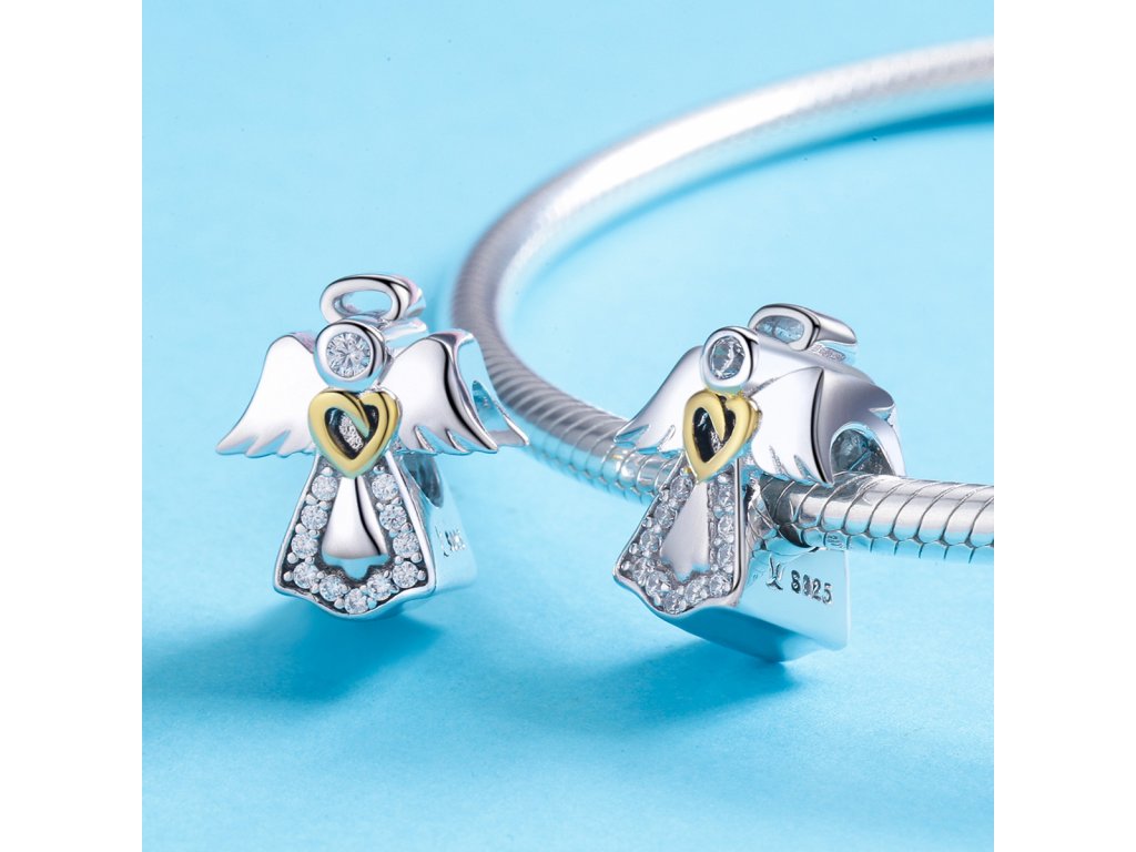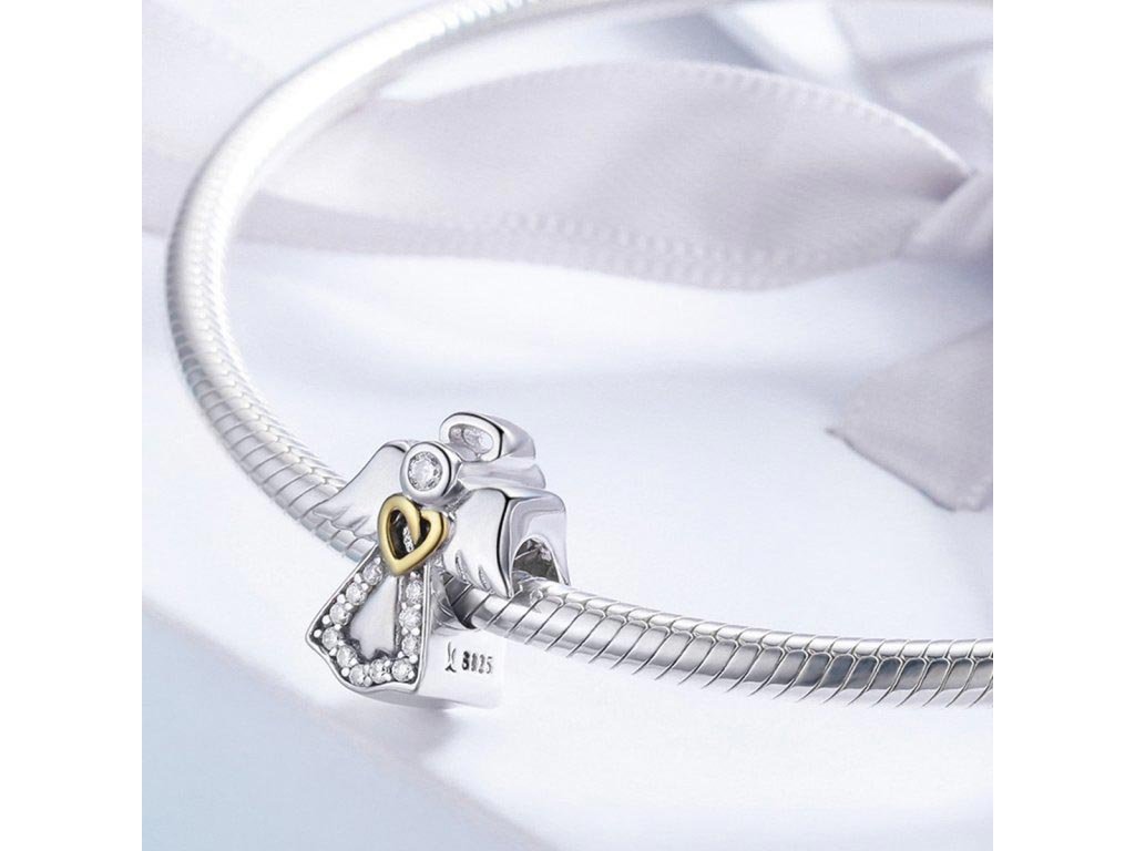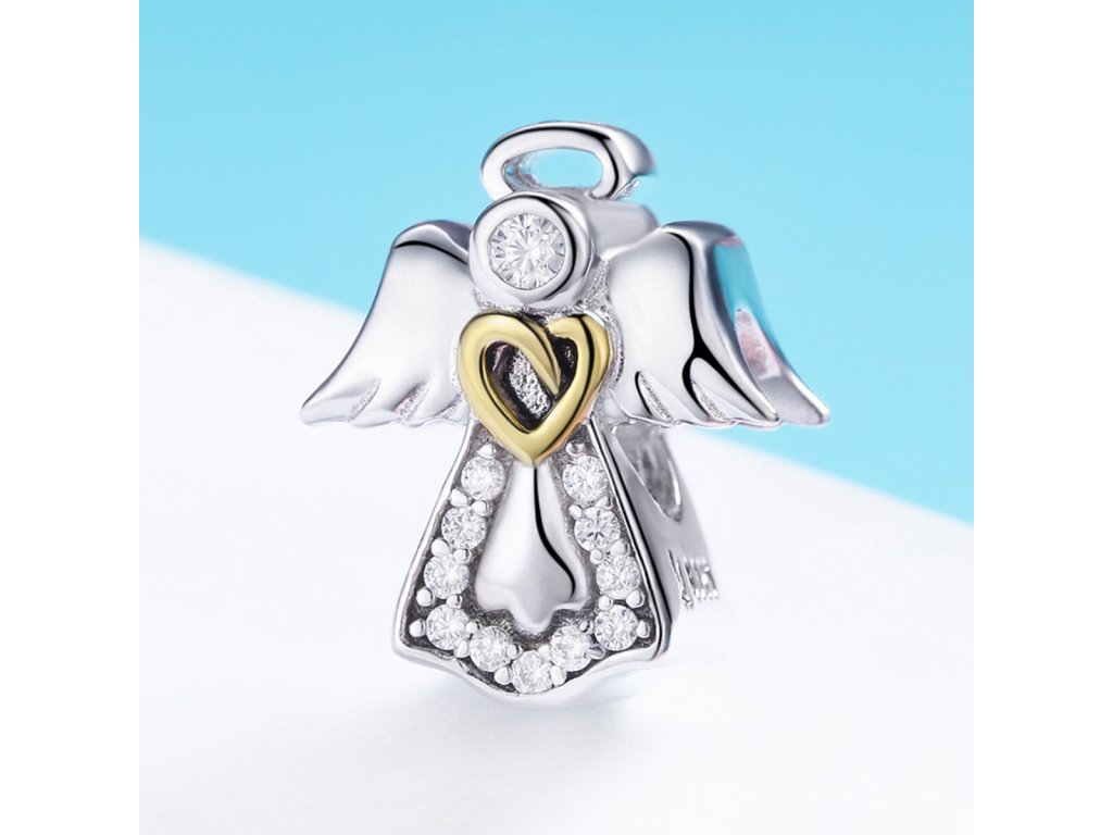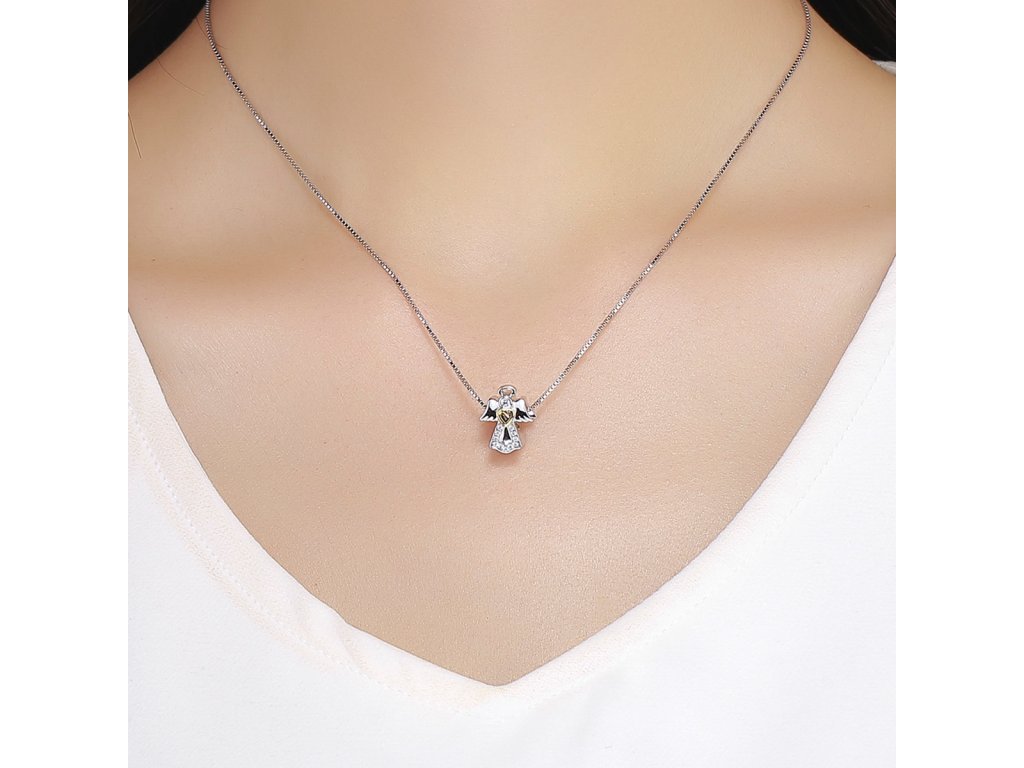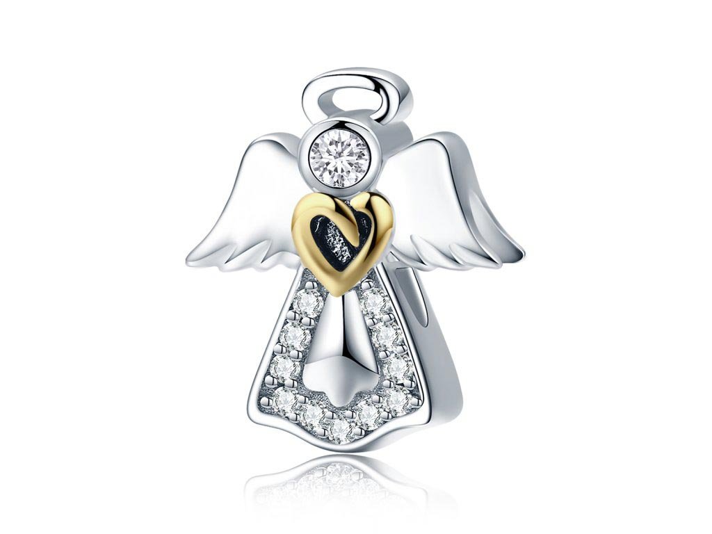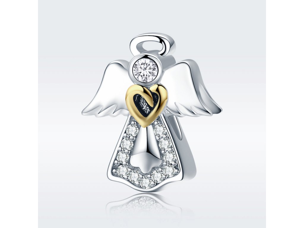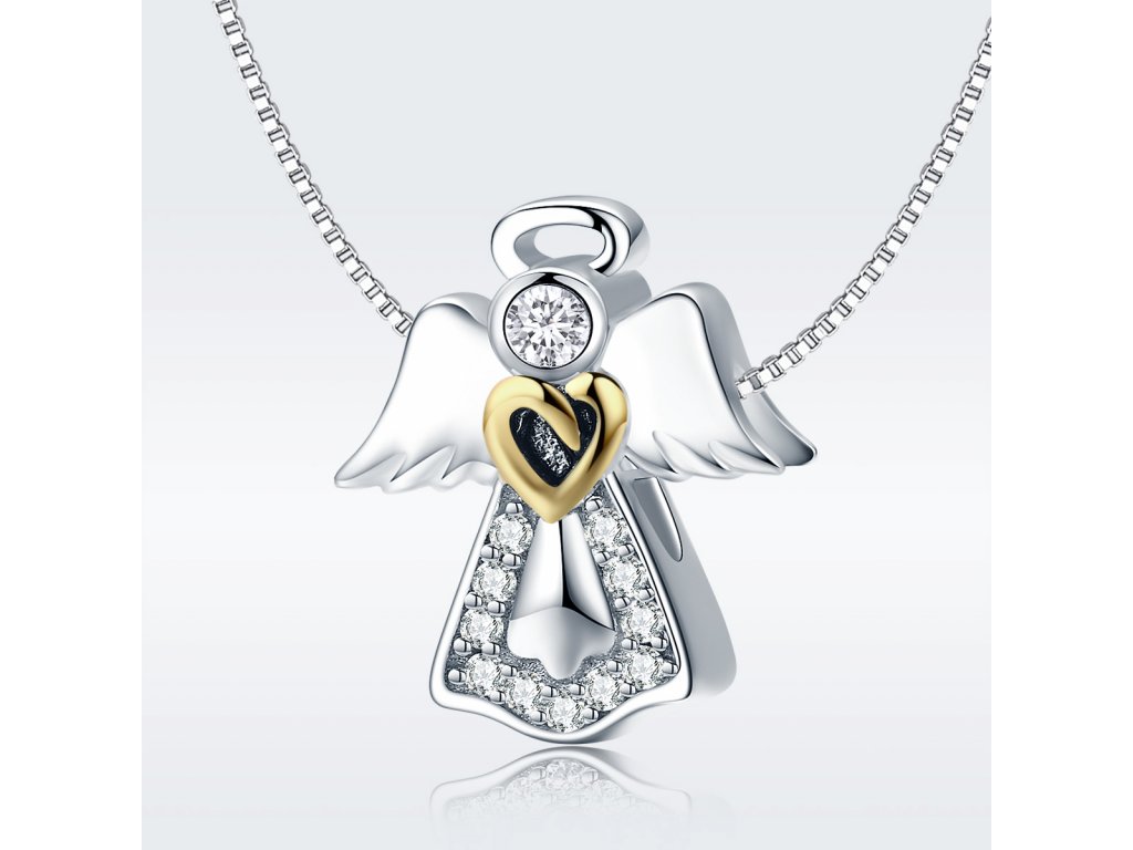 - Prívesok v dizajne anjelika zdobeného milovaným srdcom a čírymi zirkónmi.