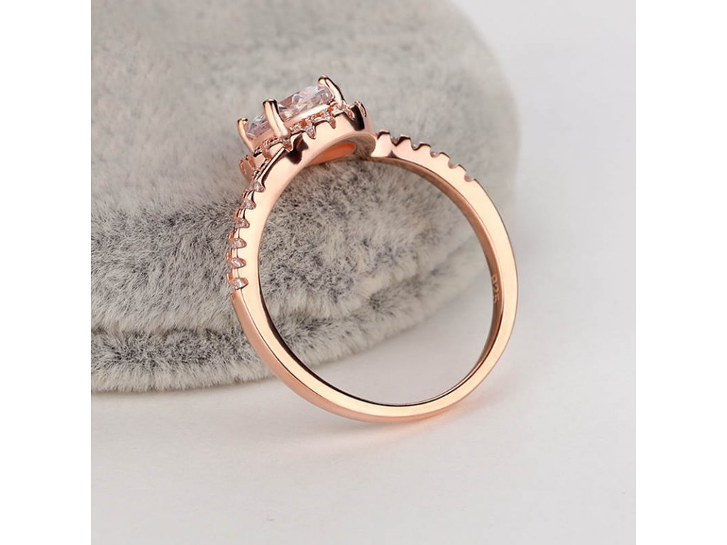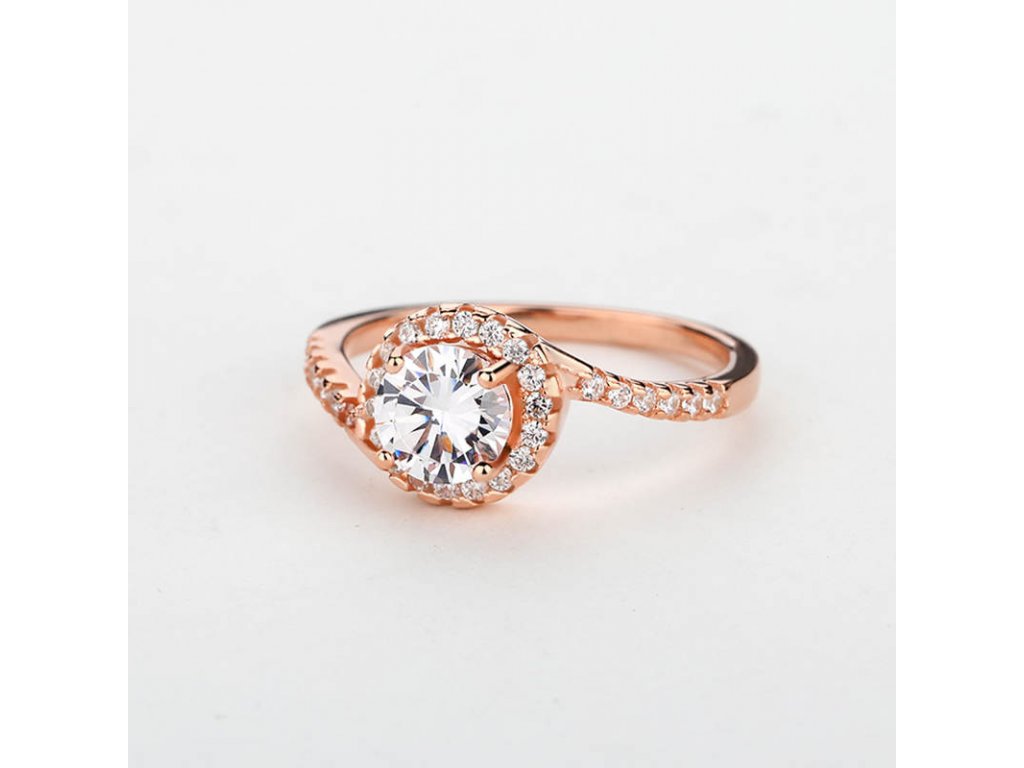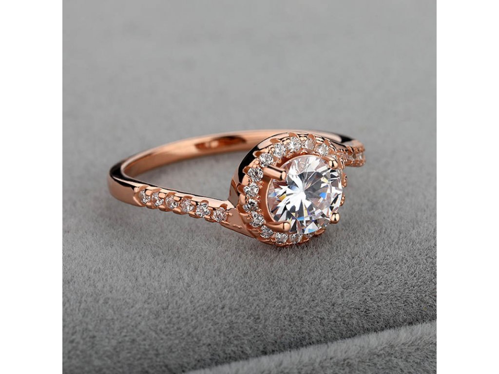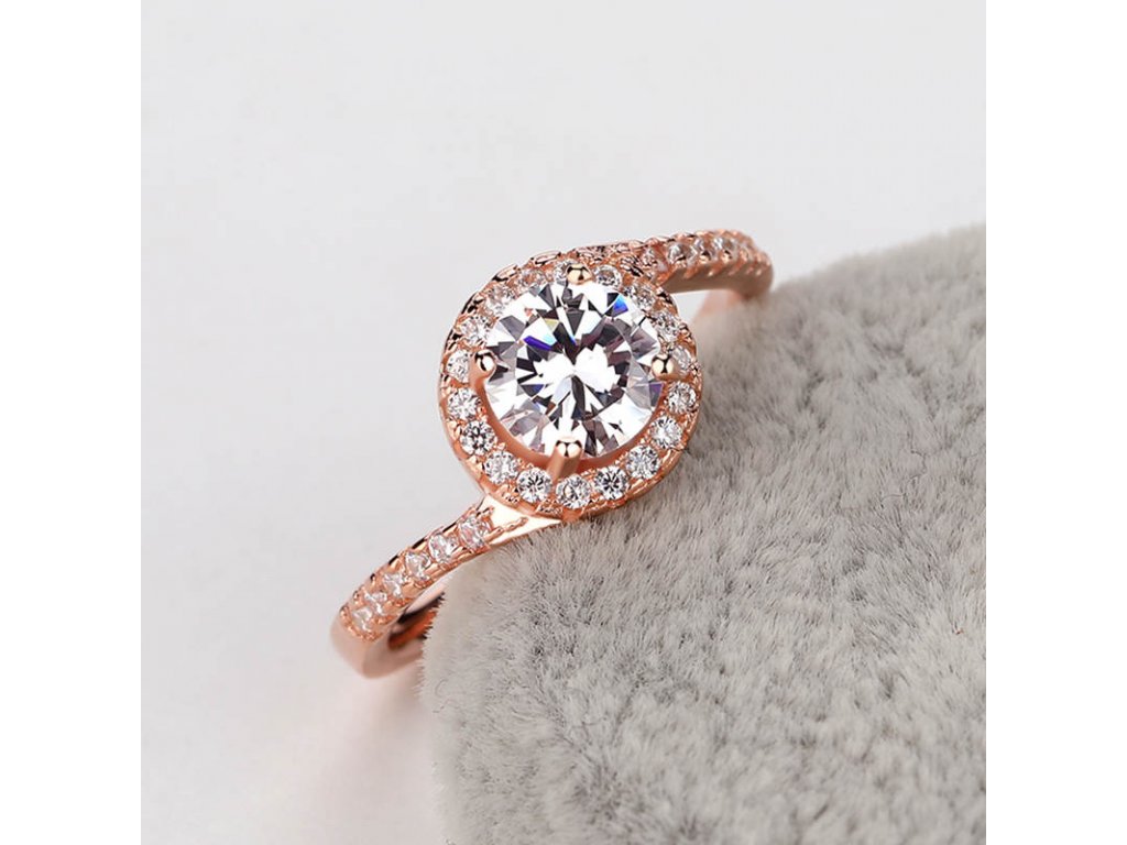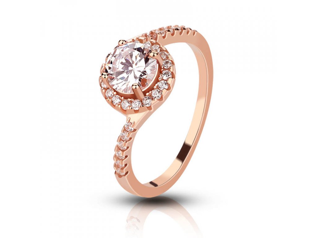 - Elegantný prsteň pozlátený ružovým zlatom zdobený čírymi kameňmi v podobe trblietavých zirkónov. Naša špeciálne navrhnutá trojnásobná vrstva ružového zlata zaručuje dlhodobú kvalitu! Originálny dizajn prsteňa, kvalitné spracovanie a materiál, ručne dohotovené.