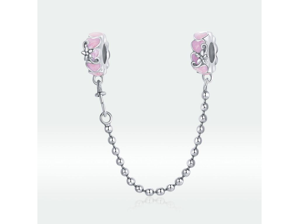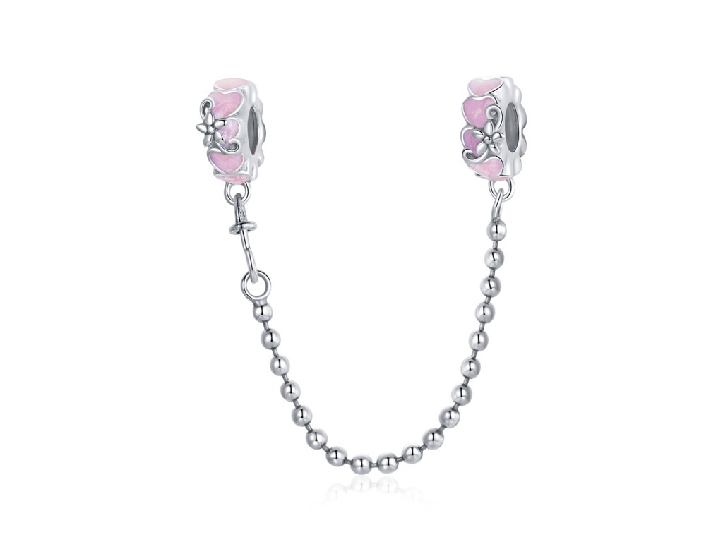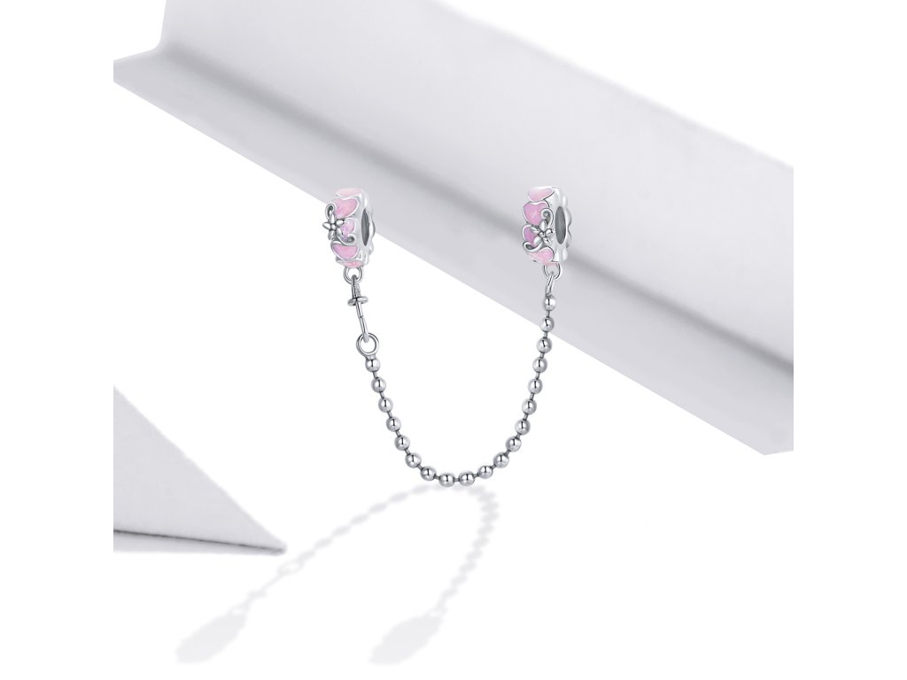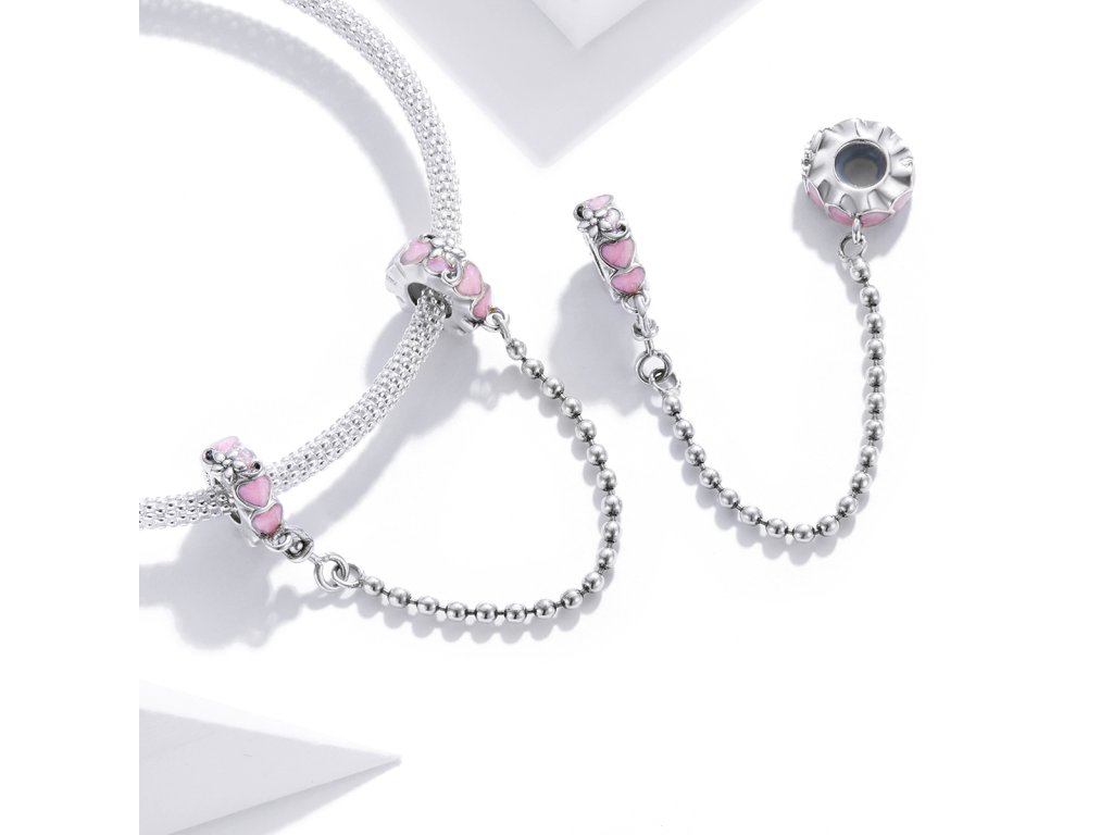 Emporial strieborná bezpečnostná retiazka na náramok Pole ružových sŕdc