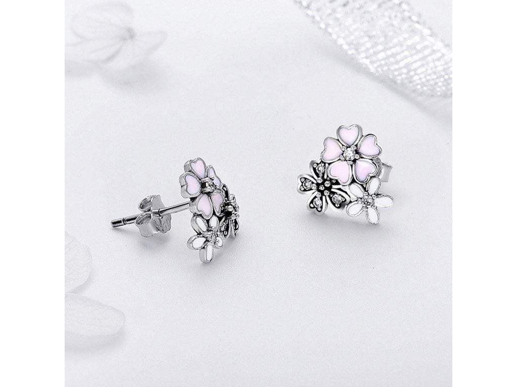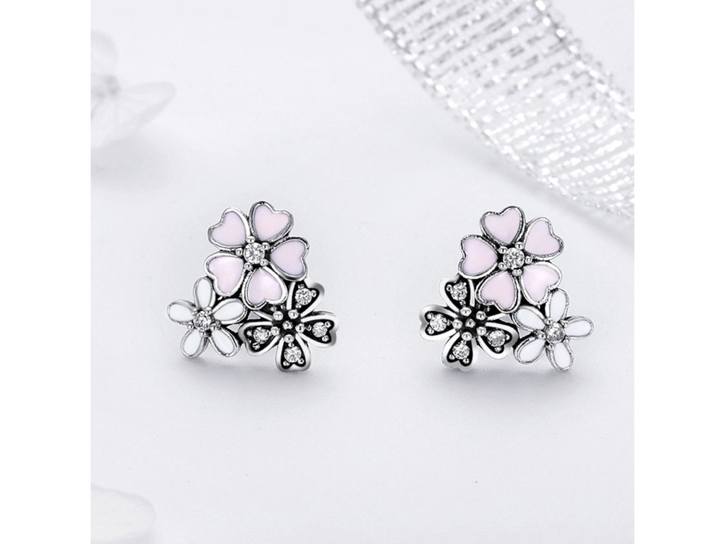 Emporial strieborné kôstkové náušnice Lúka kvetov SCE400