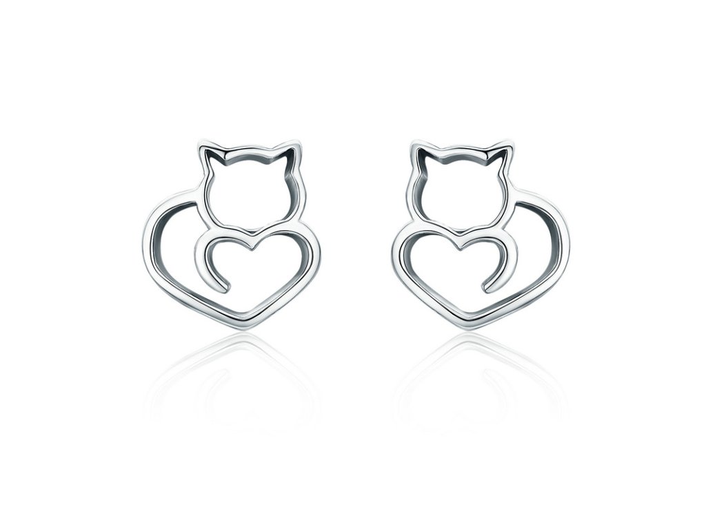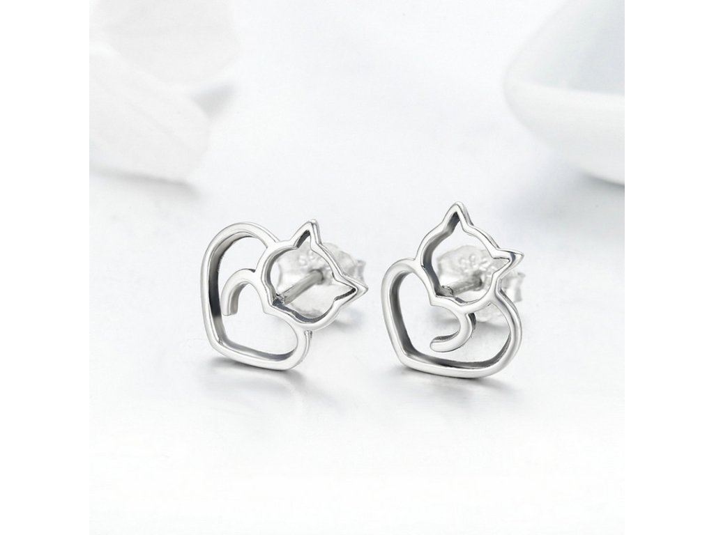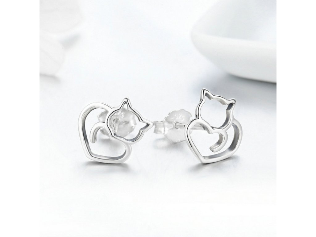 Emporial strieborné kôstkové náušnice Milovaná mačka SCE271