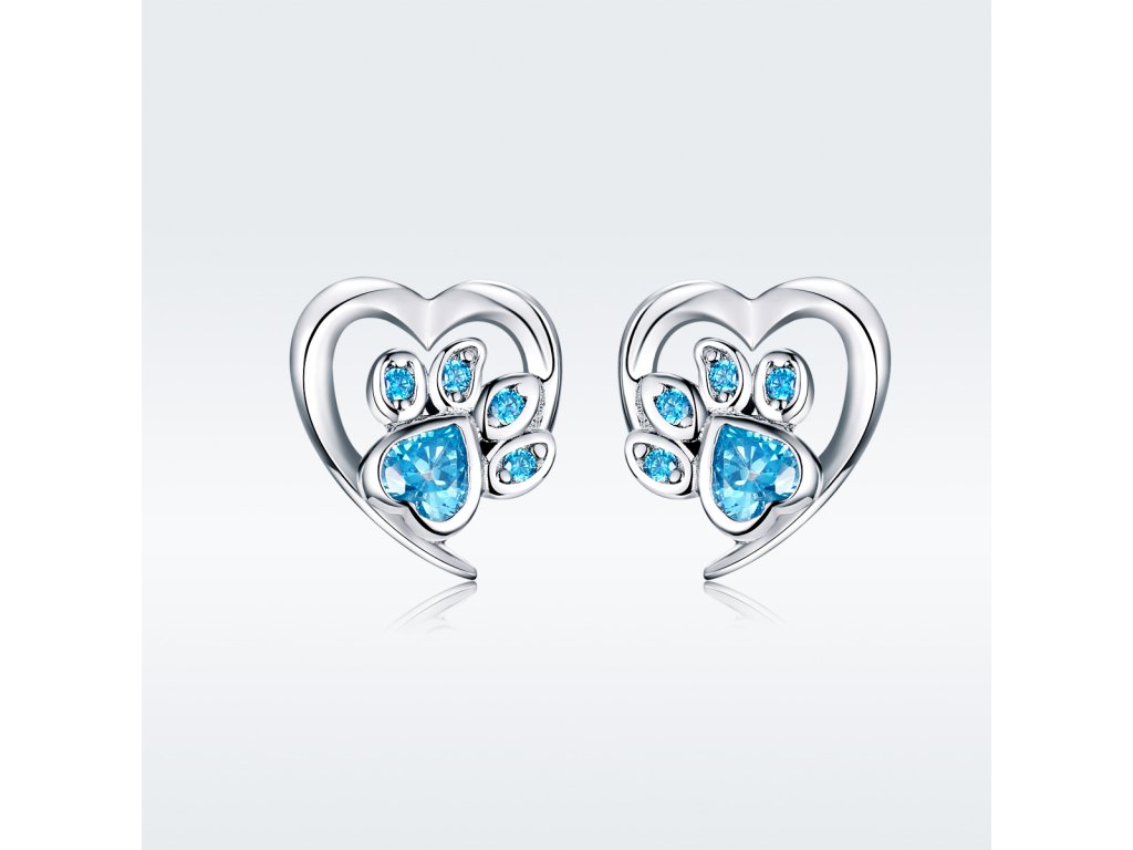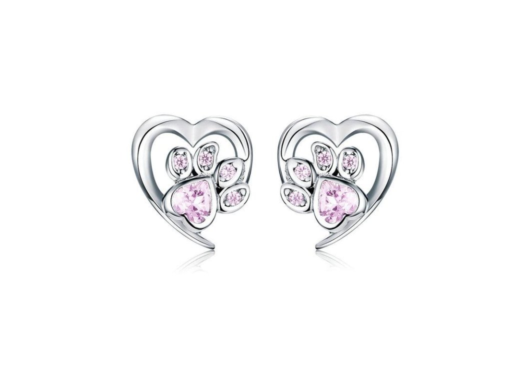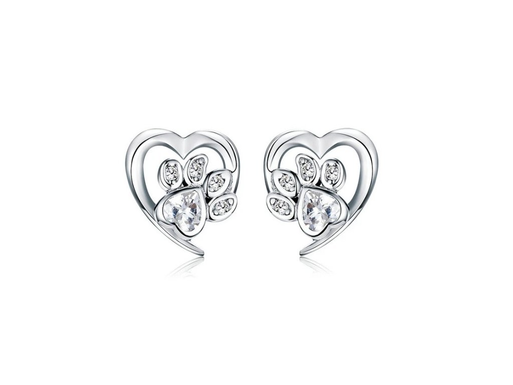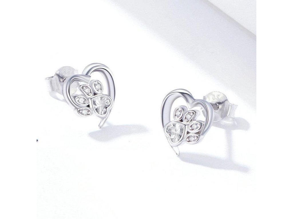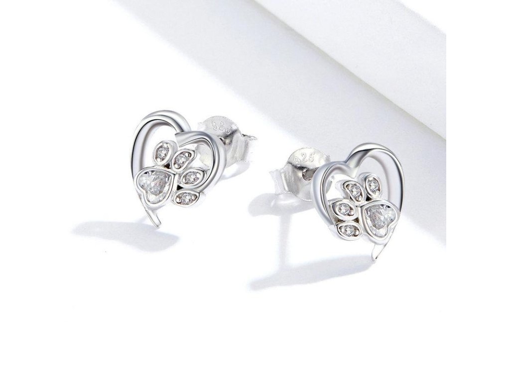 - Strieborné kôstkové náušnice v dizajne milovanej packy / labky zdobené čírymi trblietavými zirkónmi. Originálny dizajn náušníc, kvalitné spracovanie a materiál, ručne dokončené.