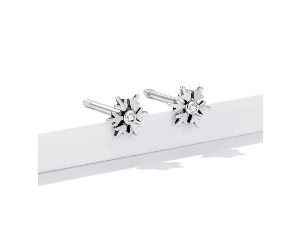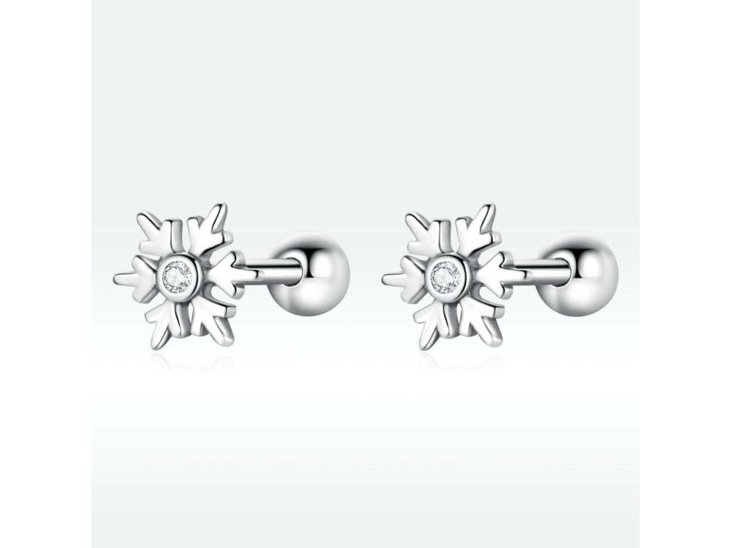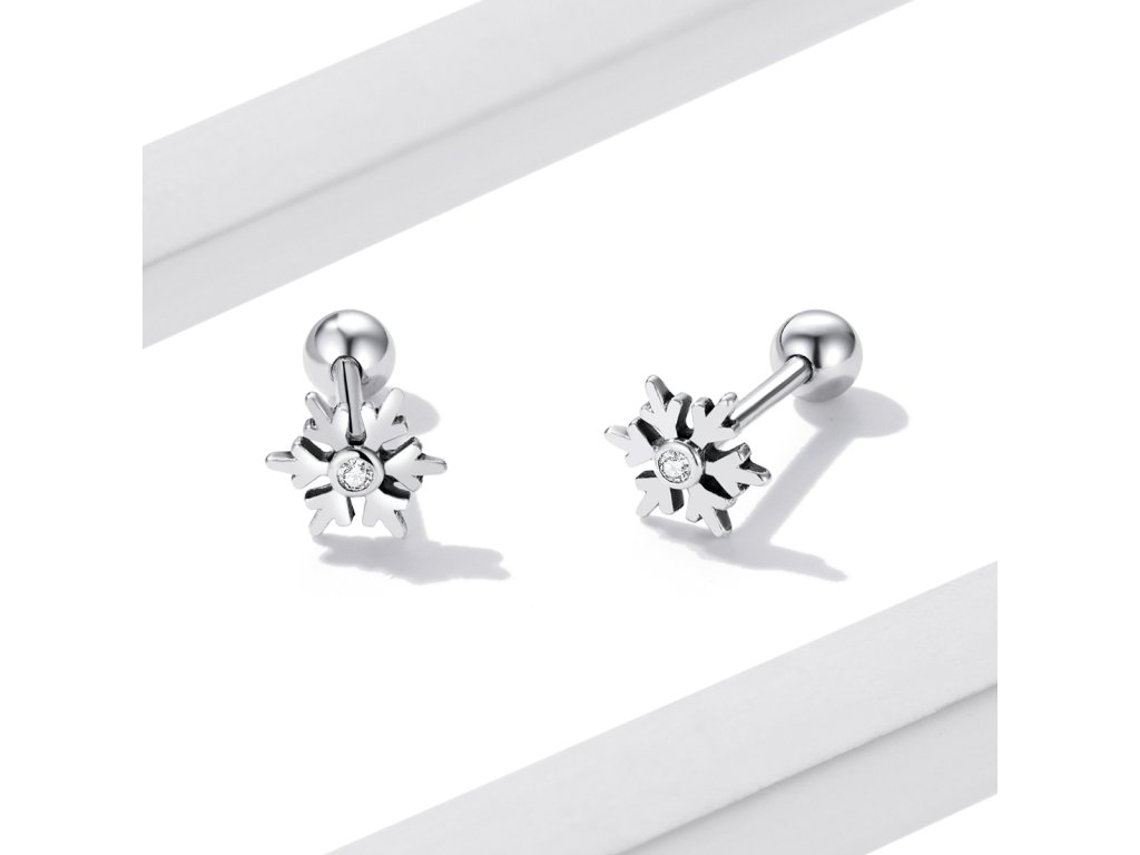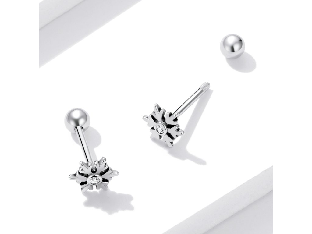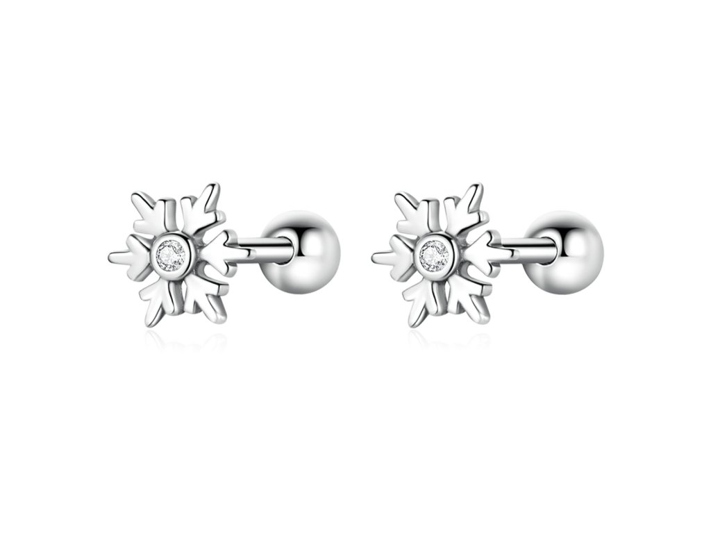 Emporial strieborné kôstkové náušnice Snehová vločka BSE529