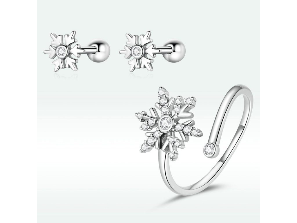 - Strieborné kôstkové náušnice v dizajne snehových vločiek zdobených trblietavými kameňmi v podobe čírych zirkónov. Originálny design náušníc, kvalitné spracovanie a materiál, ručne dohotovené.