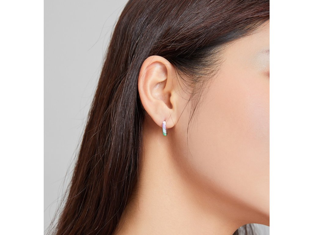 - Strieborné náušnice krúžky zdobené ručne nanášanou farebnou glazúrou. Originálny dizajn náušníc, kvalitné spracovanie a materiál, ručne dokončené.