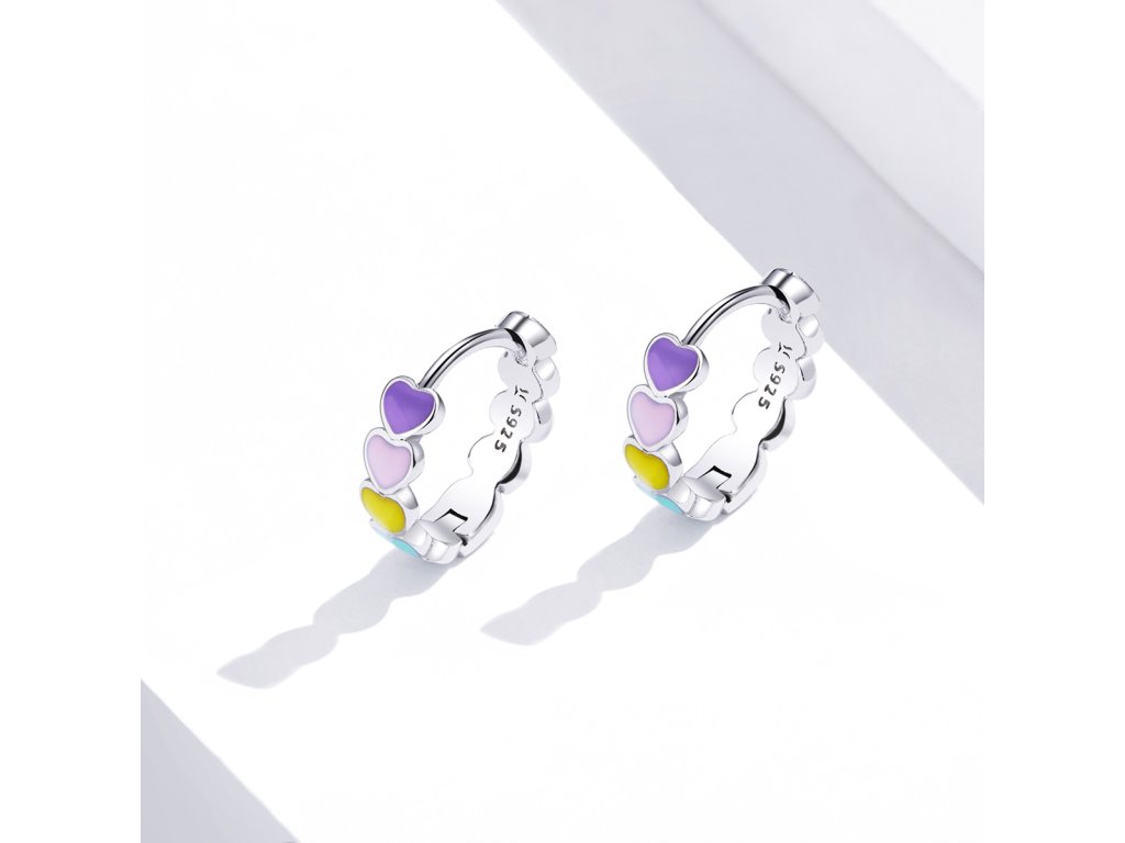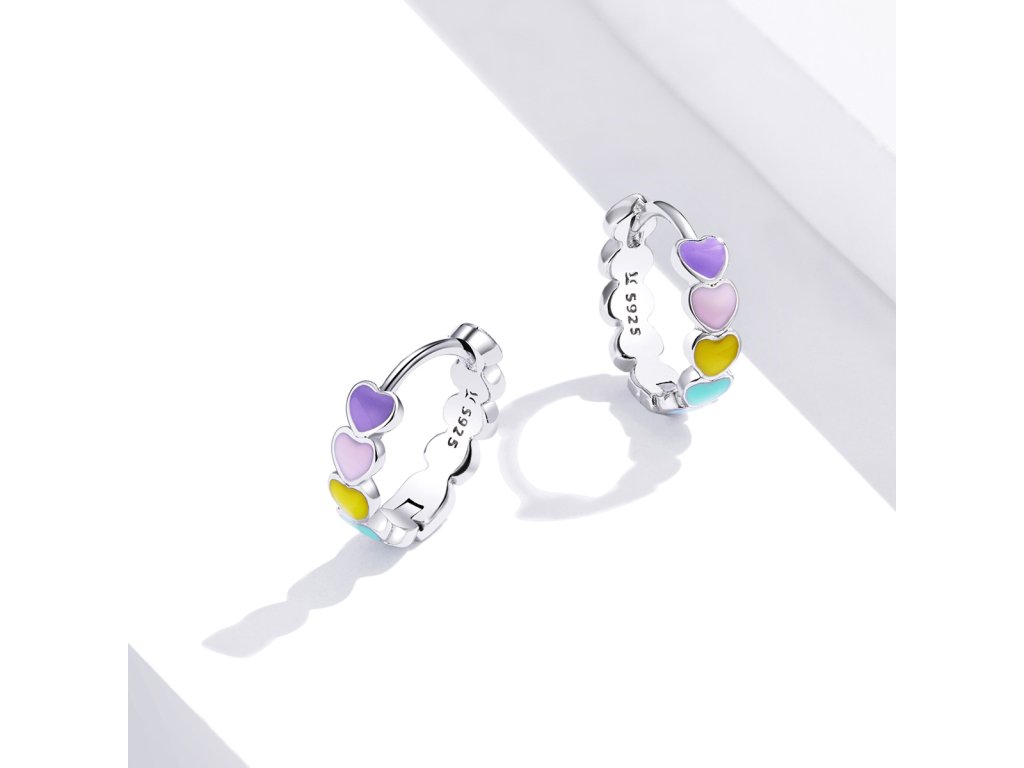 Emporial strieborné náušnice Dúhové srdcové krúžky SCE909