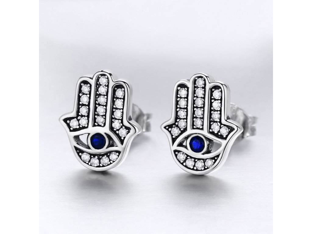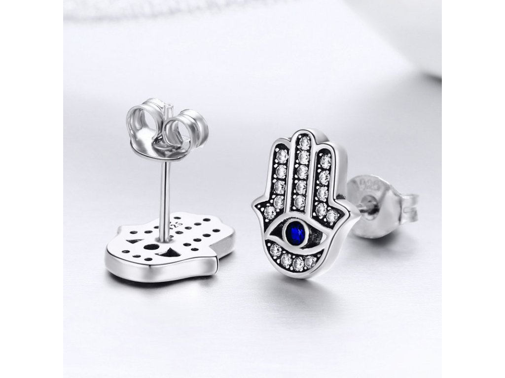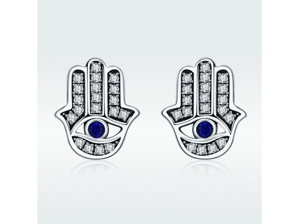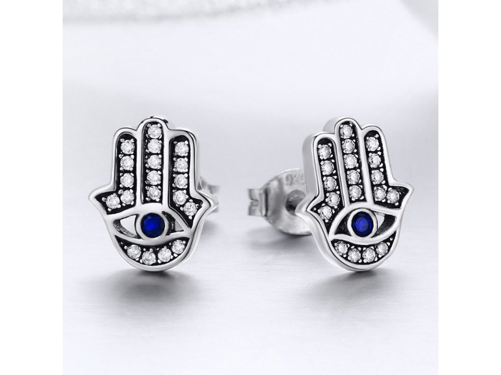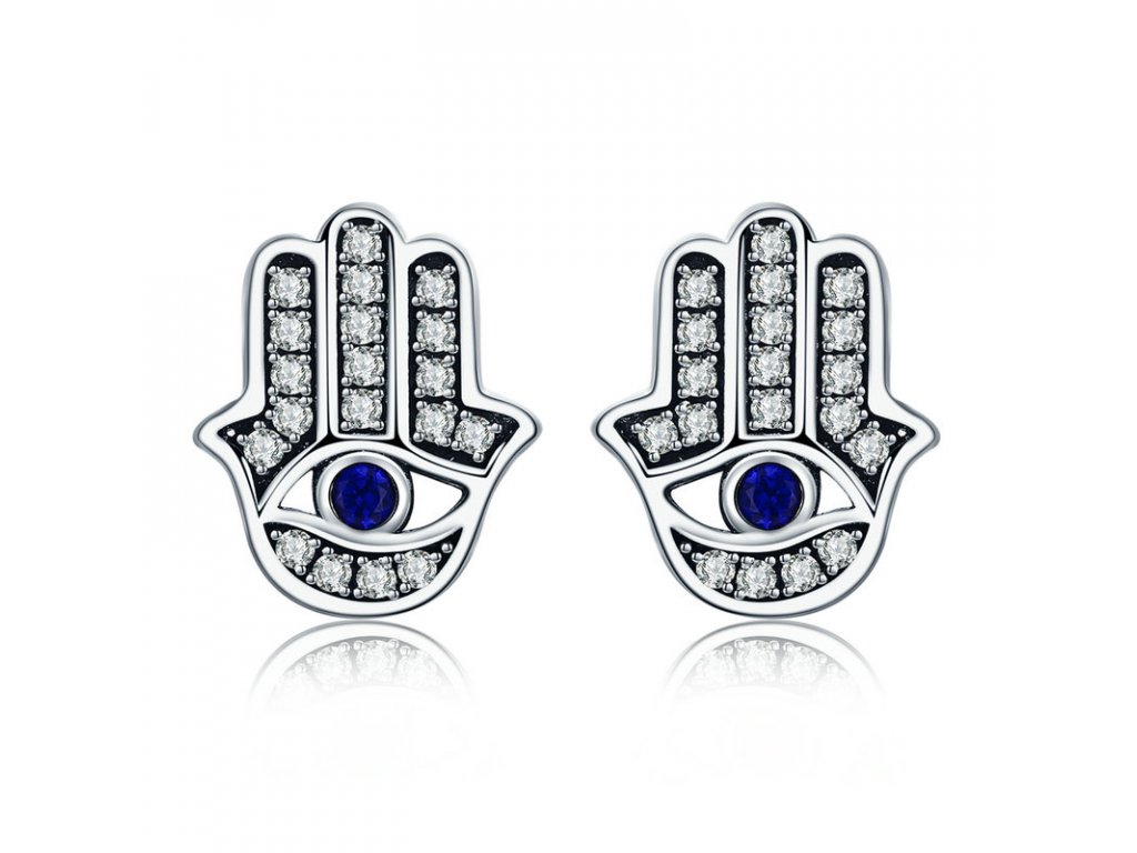 Emporial strieborné náušnice Hamsa Symbol ochrany SCE389