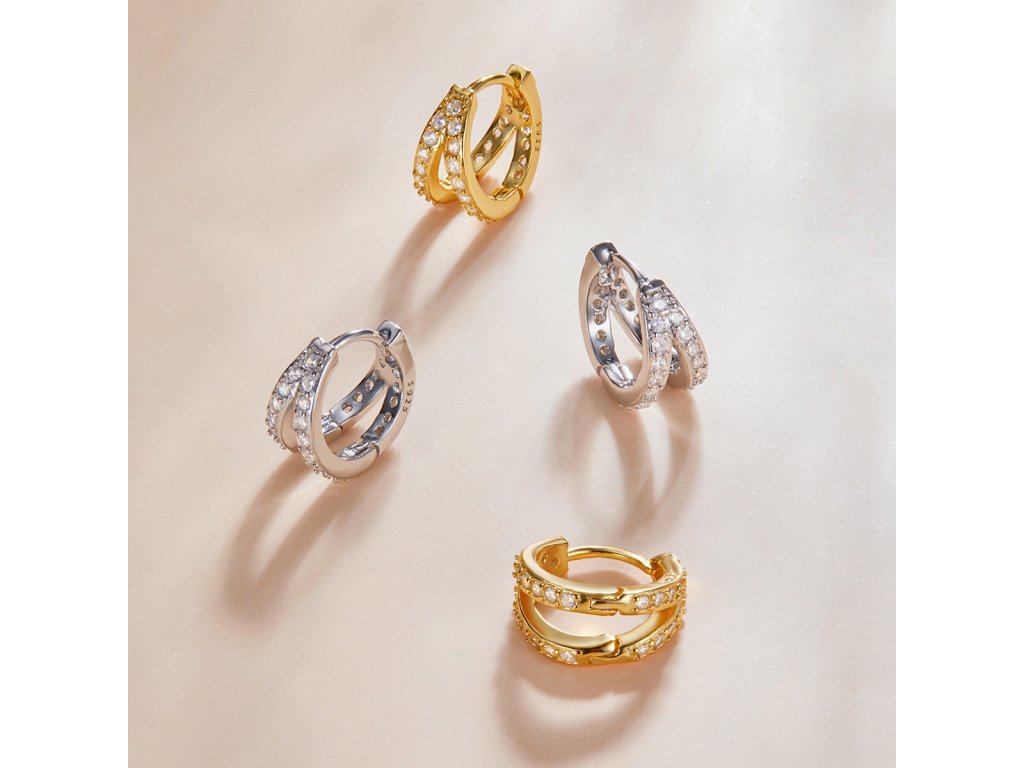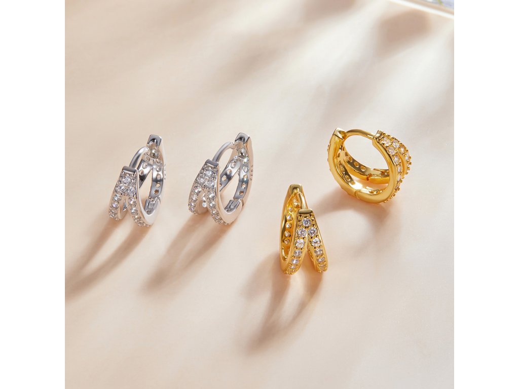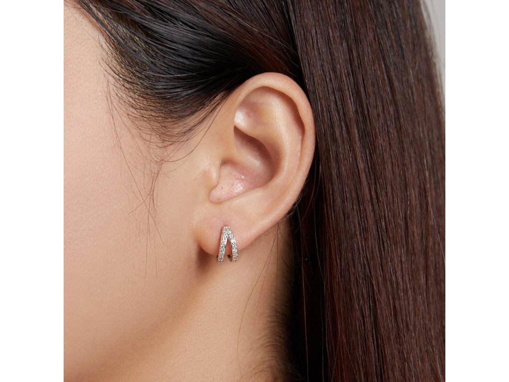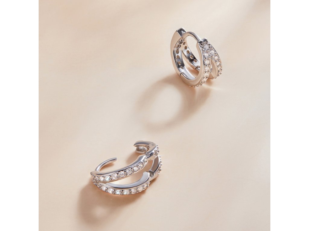 - Strieborné elegantné kruhové náušnice zdobené trblietavými kameňmi v podobe čírych zirkónov. Originálny design náušníc, kvalitné spracovanie a materiál, ručne dohotovené.