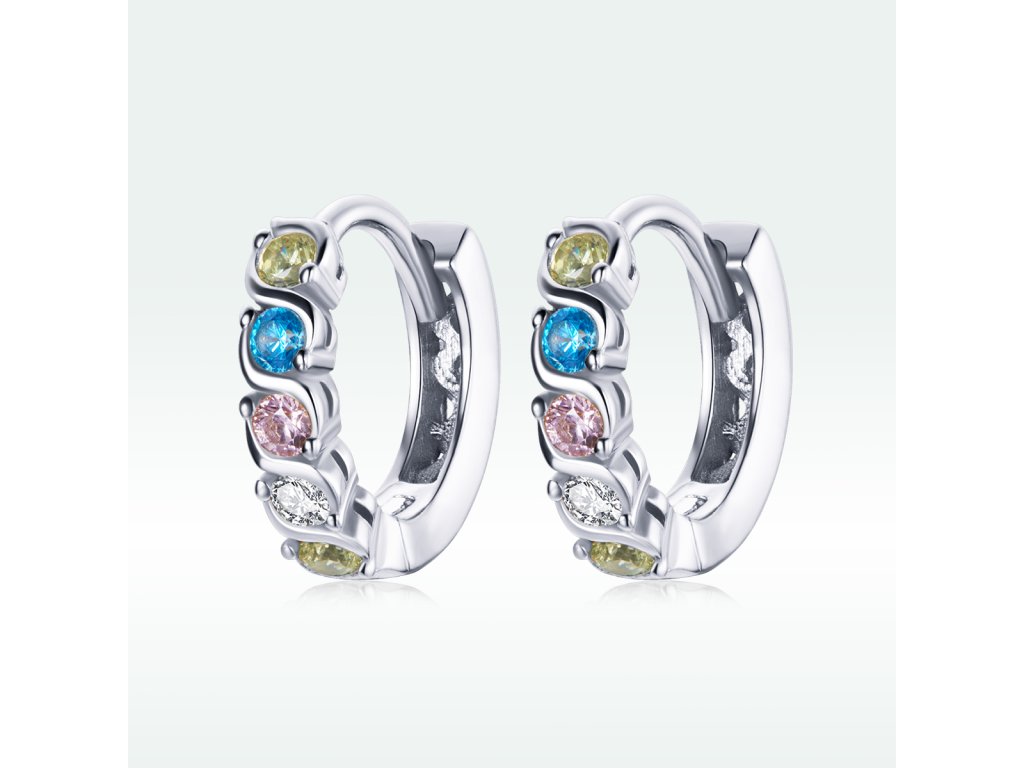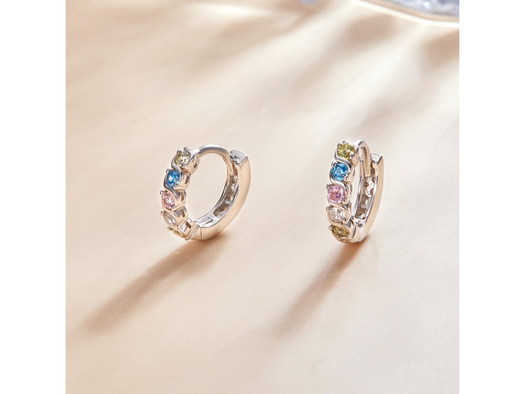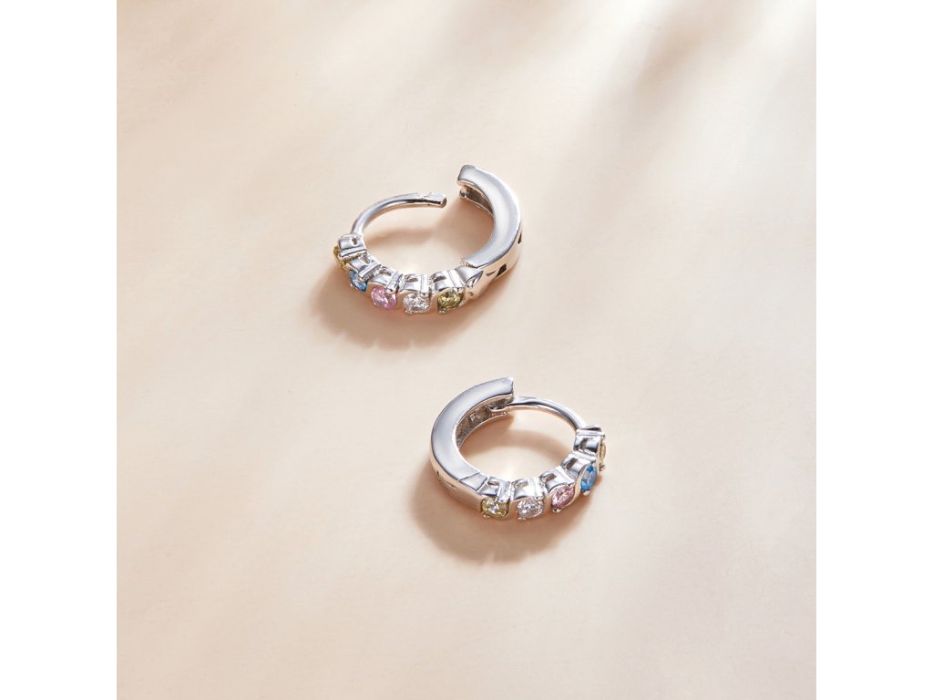 Emporial strieborné náušnice krúžky Dúhová žiara SCE1166-A