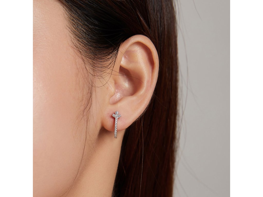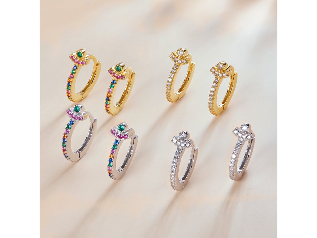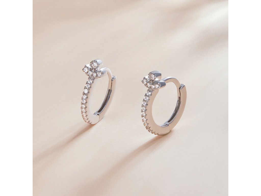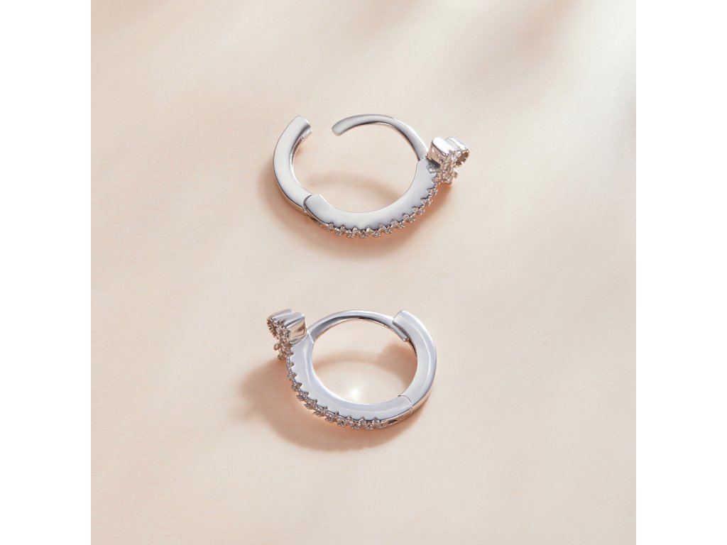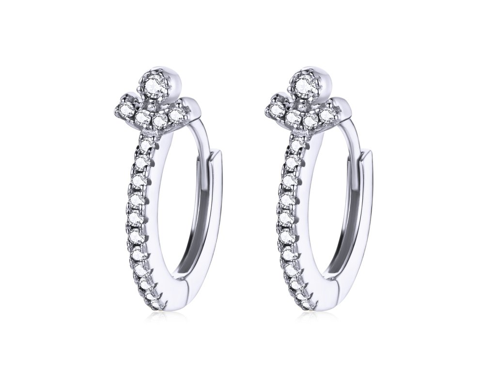 - Strieborné kruhové náušnice Urban štýl zdobené trblietavými kameňmi v podobe čírych zirkónov. Originálny design náušníc, kvalitné spracovanie a materiál, ručne dohotovené.