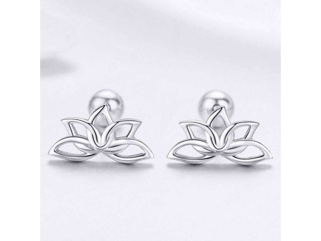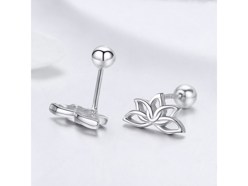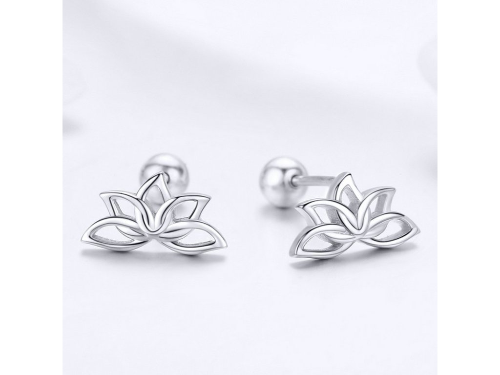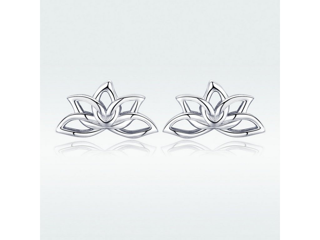 - Jemné strieborné náušnice v tvare lotosového kvetu.