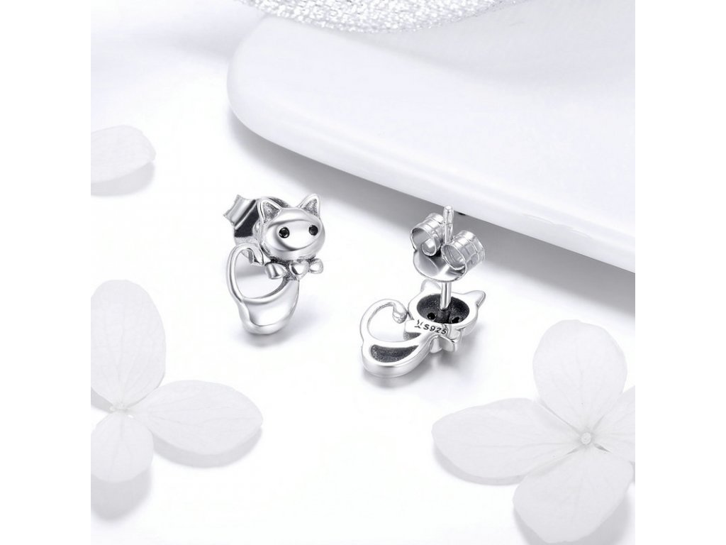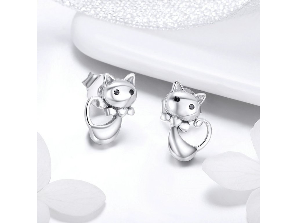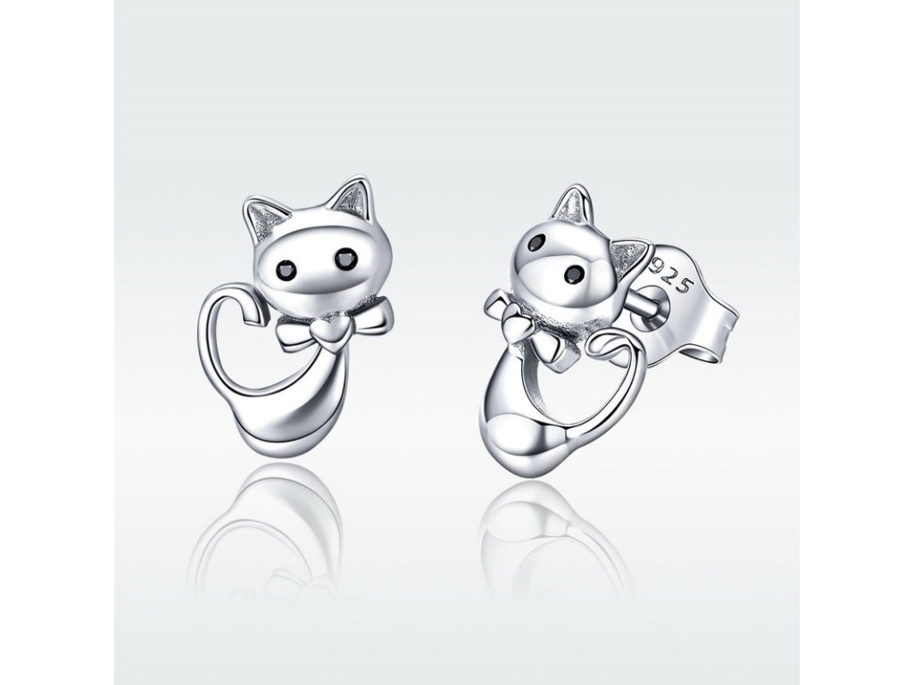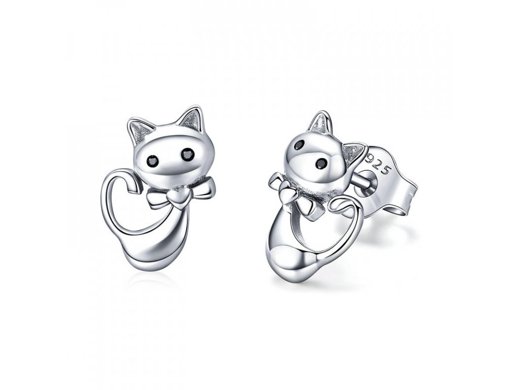- Luxusné a prepracované strieborné náušnice v dizajne milovanej mačky zdobené zirkónmi.