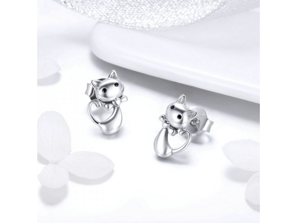 Emporial strieborné náušnice Milovaná mačka SCE450