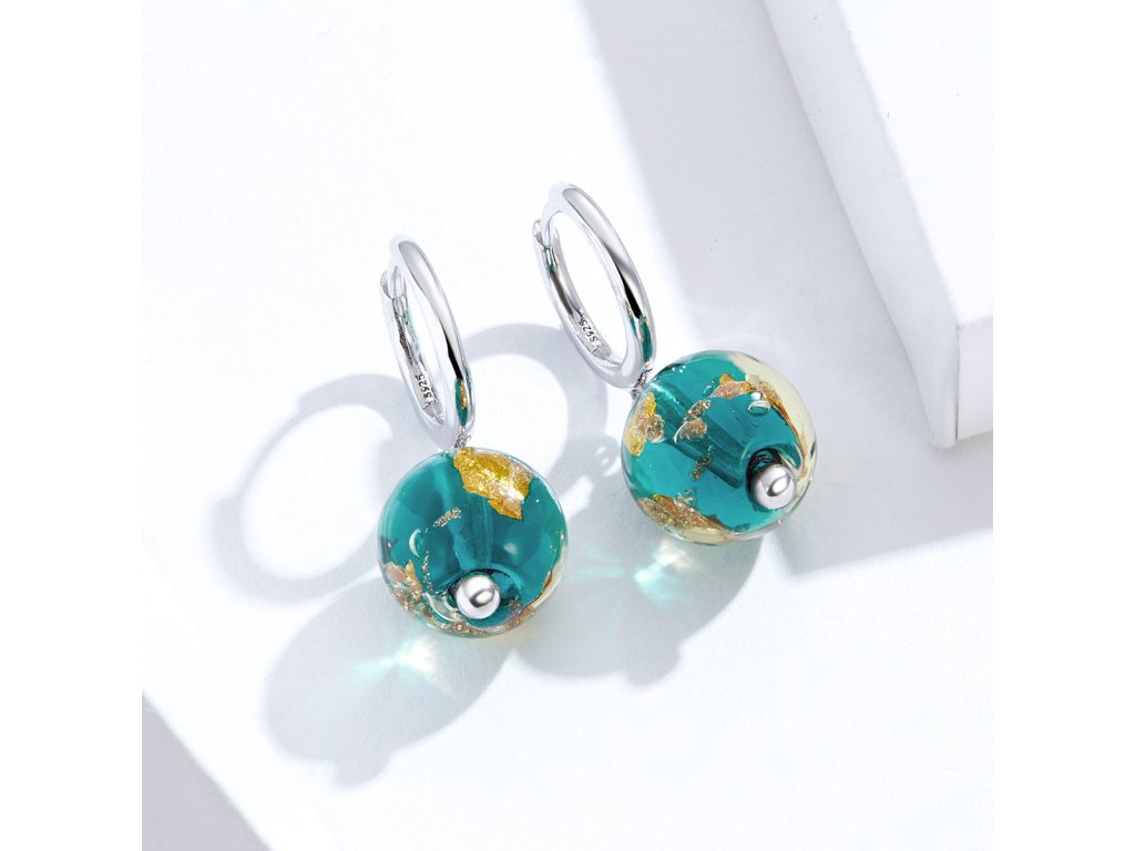 Emporial strieborné náušnice Ozdobné zeleno-zlaté korálky SCE817