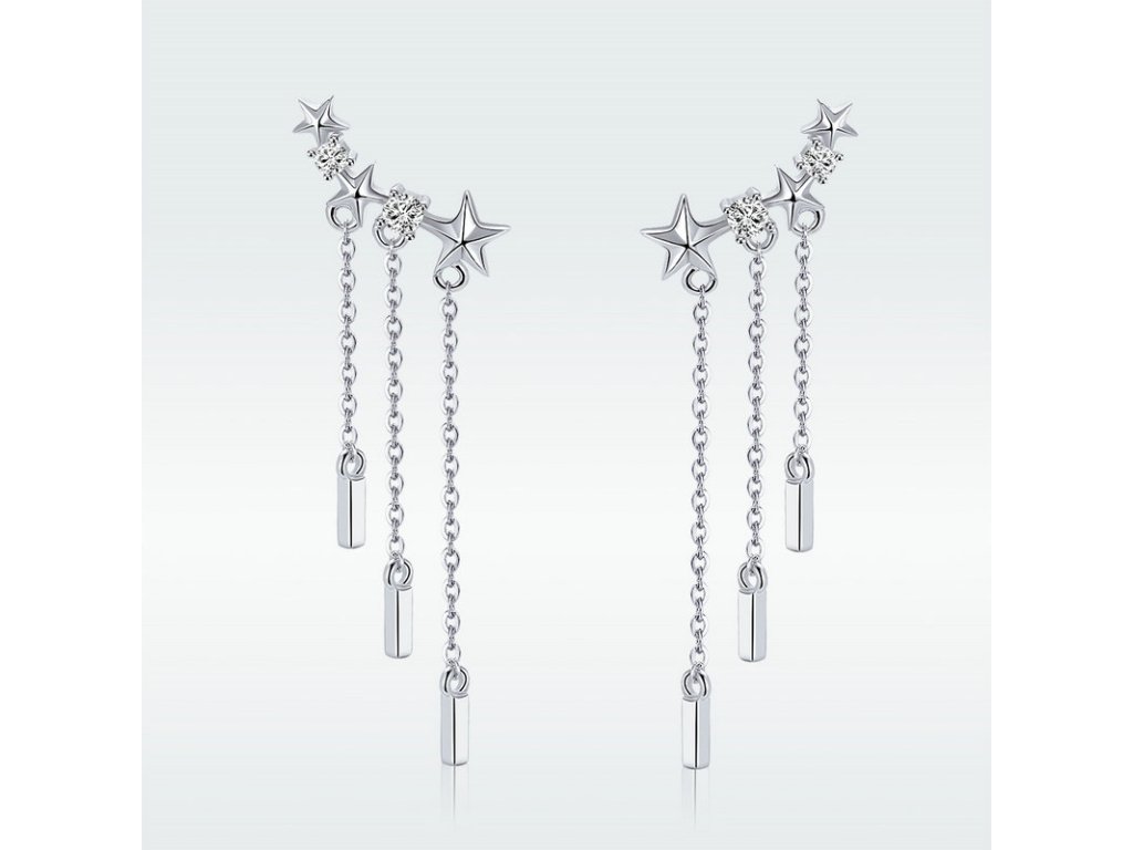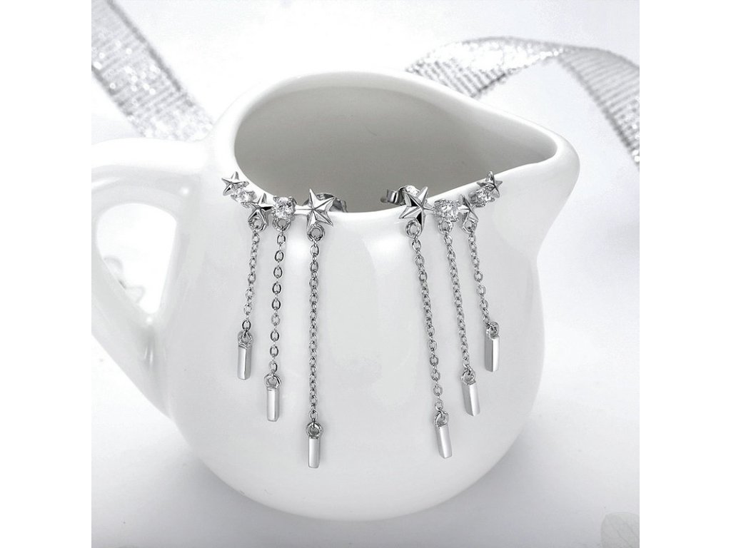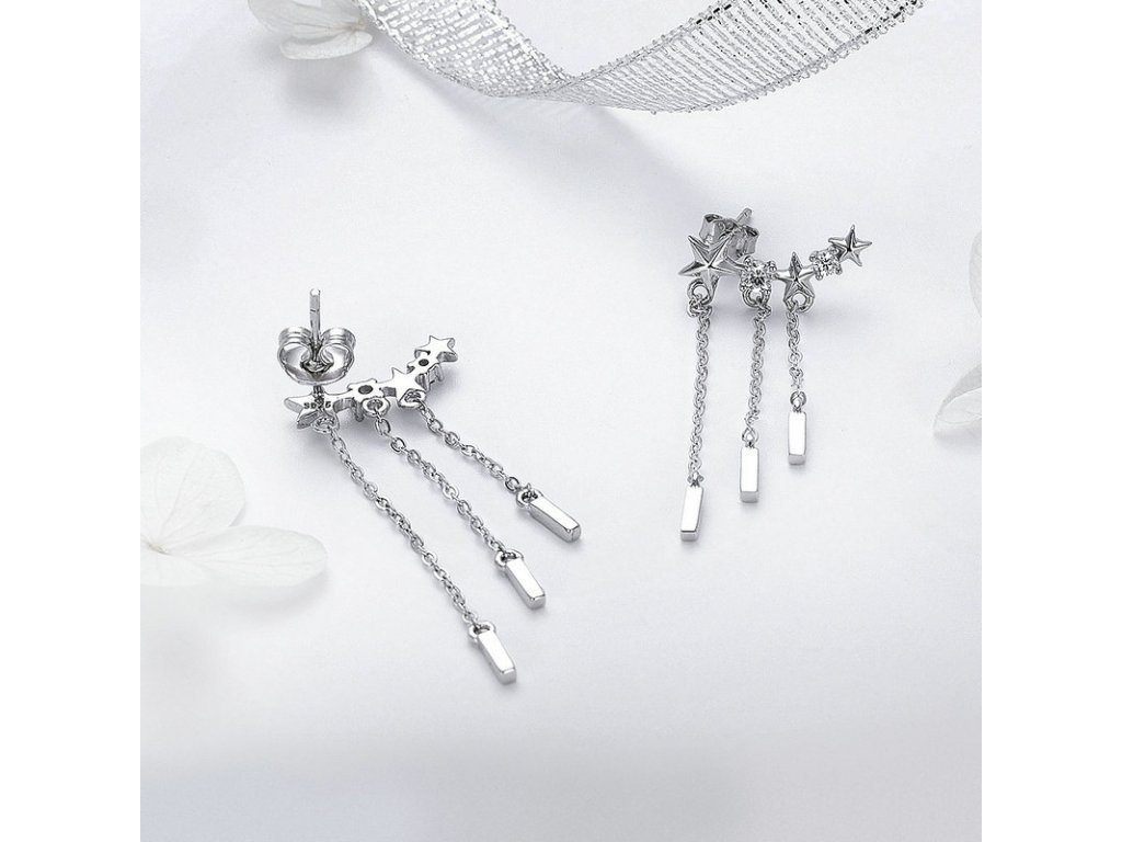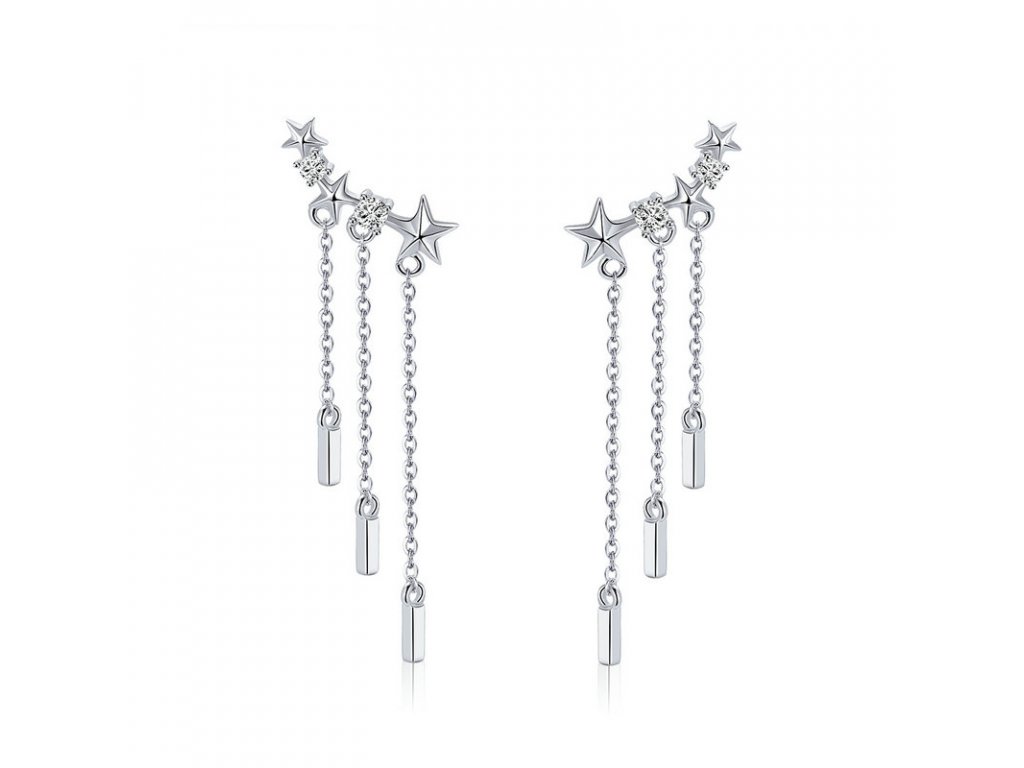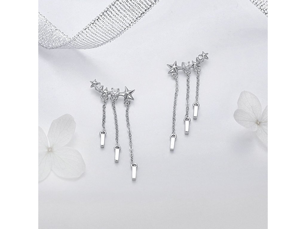 - Luxusné a prepracované strieborné náušnice v dizajne padajúcich hviezd zdobené zirkónmi.