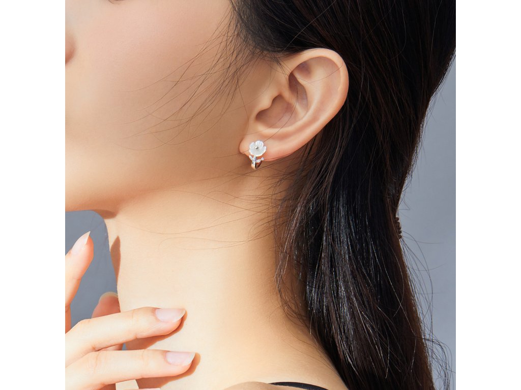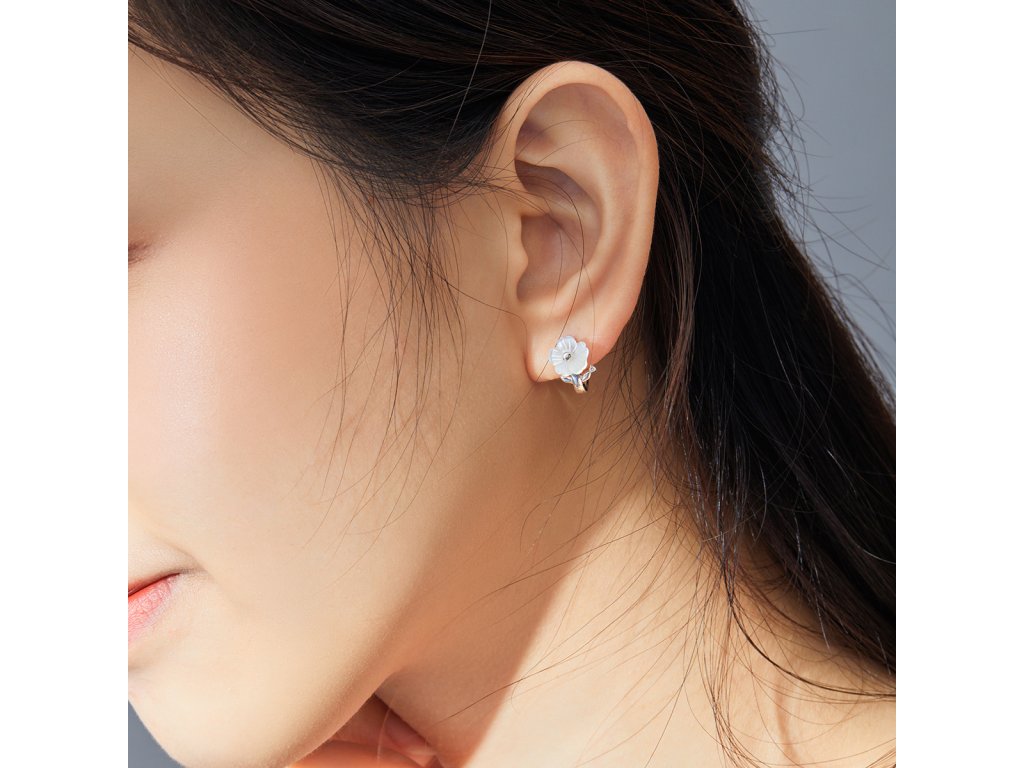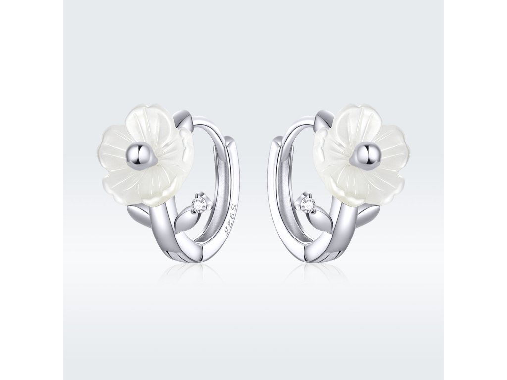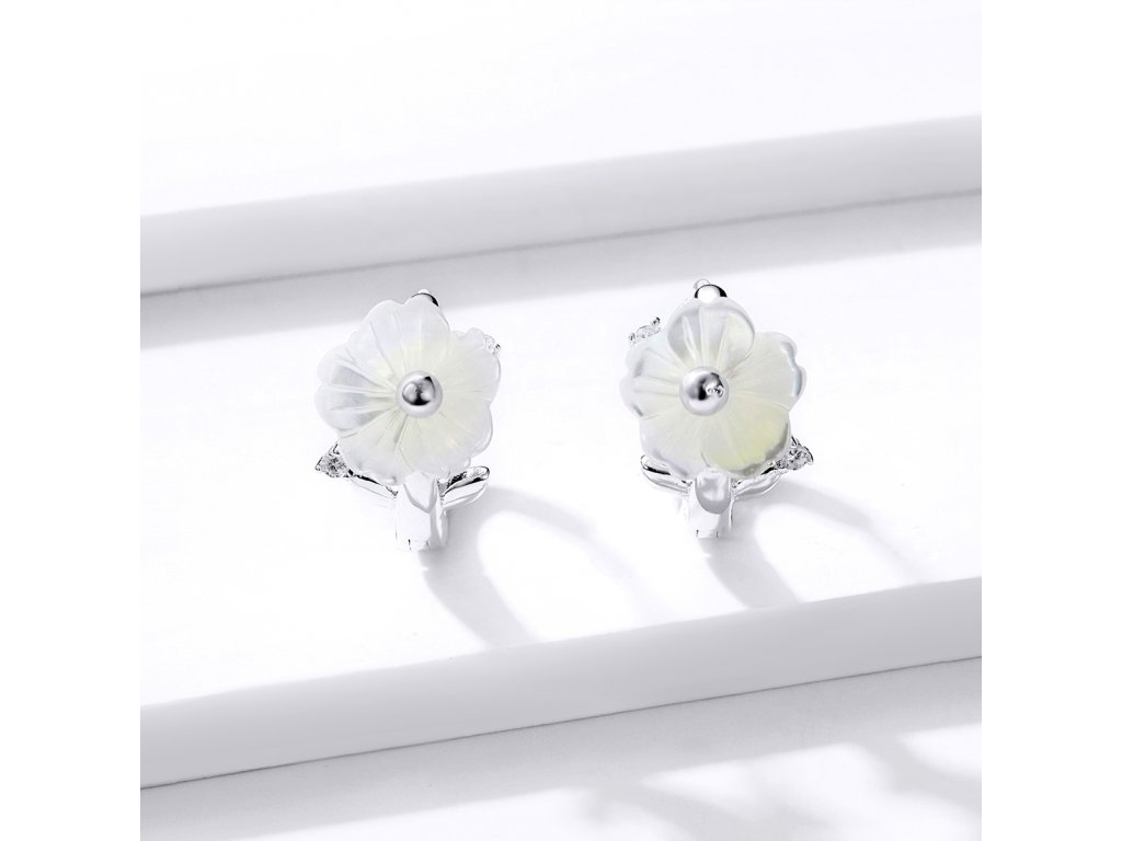Emporial strieborné náušnice Perleťový kvet BSE321