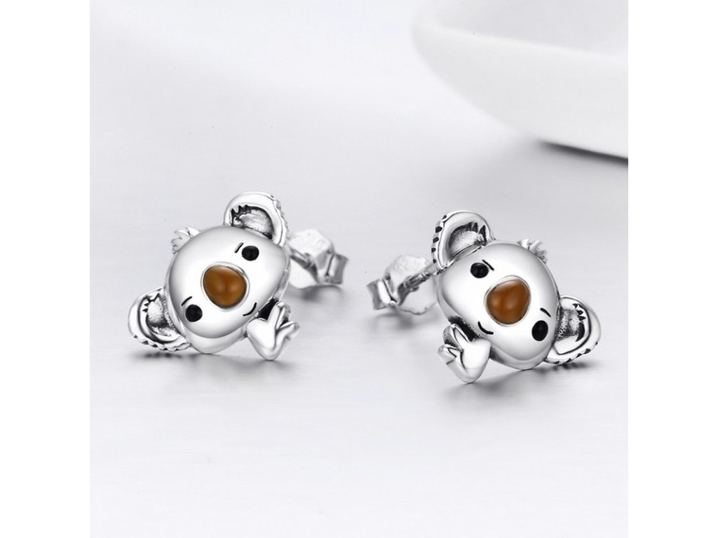 - Luxusné a prepracované kôstkové náušnice v dizajne roztomilé koaly zdobené ručne nanášanou glazúrou.
