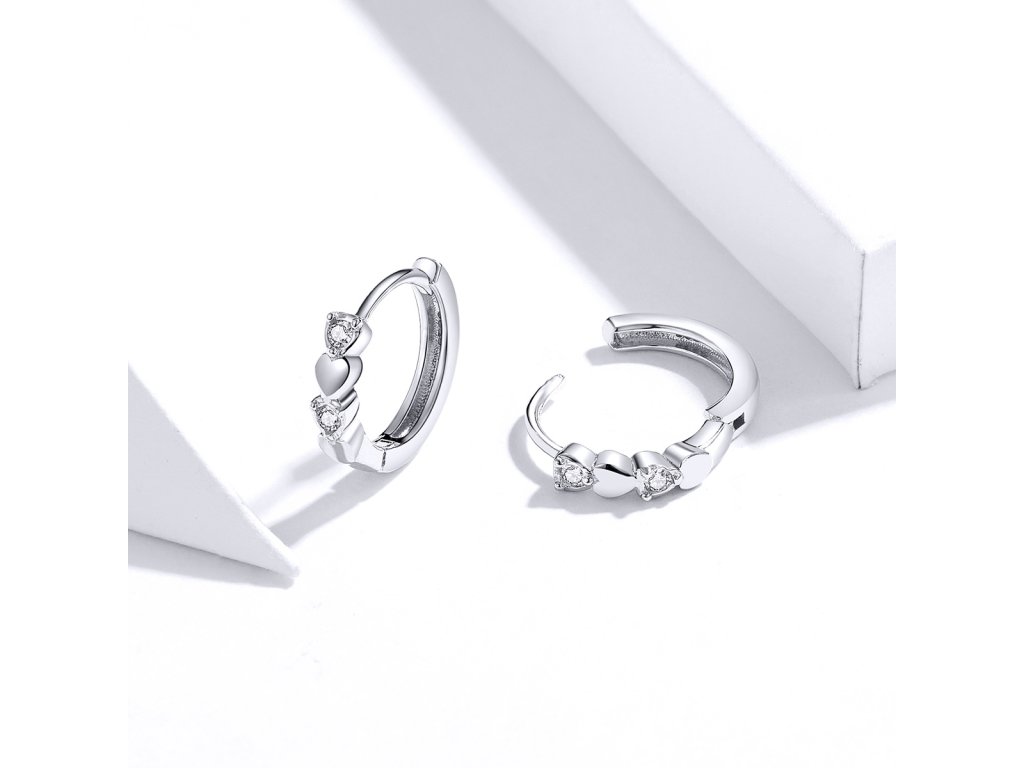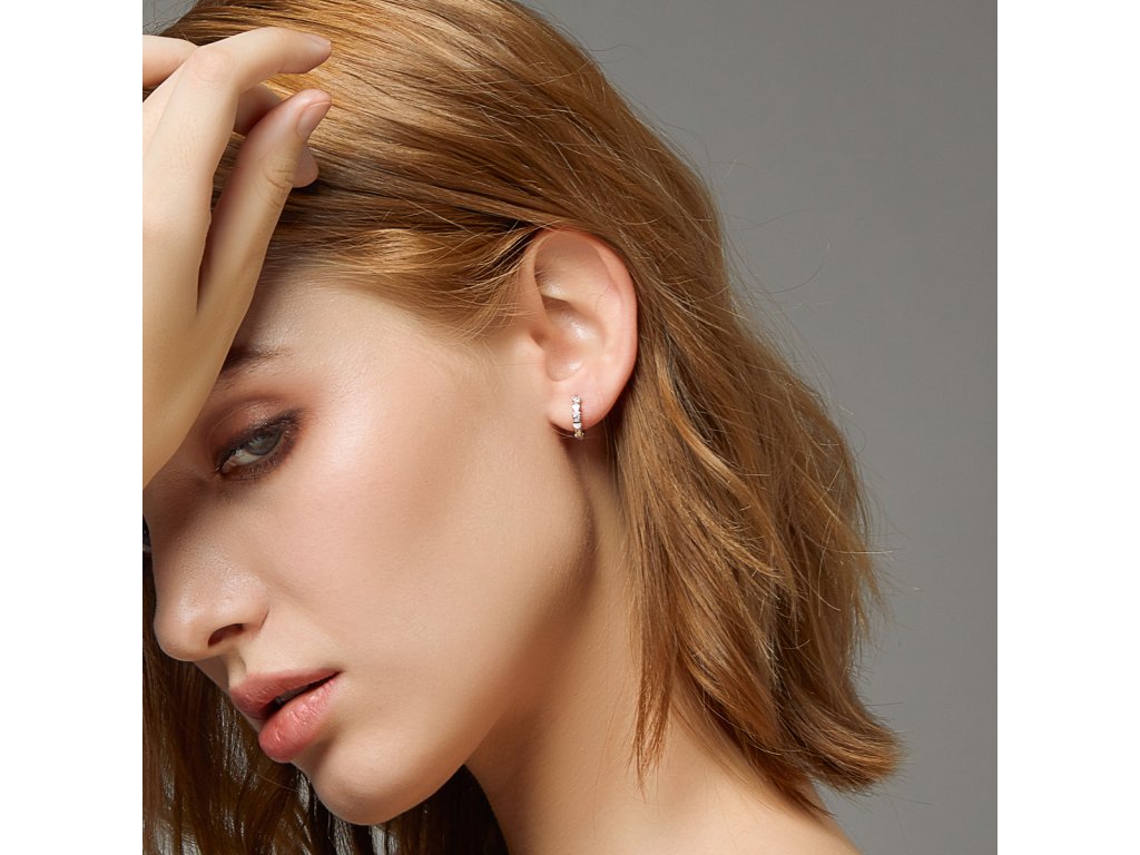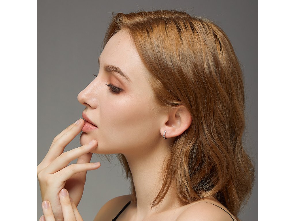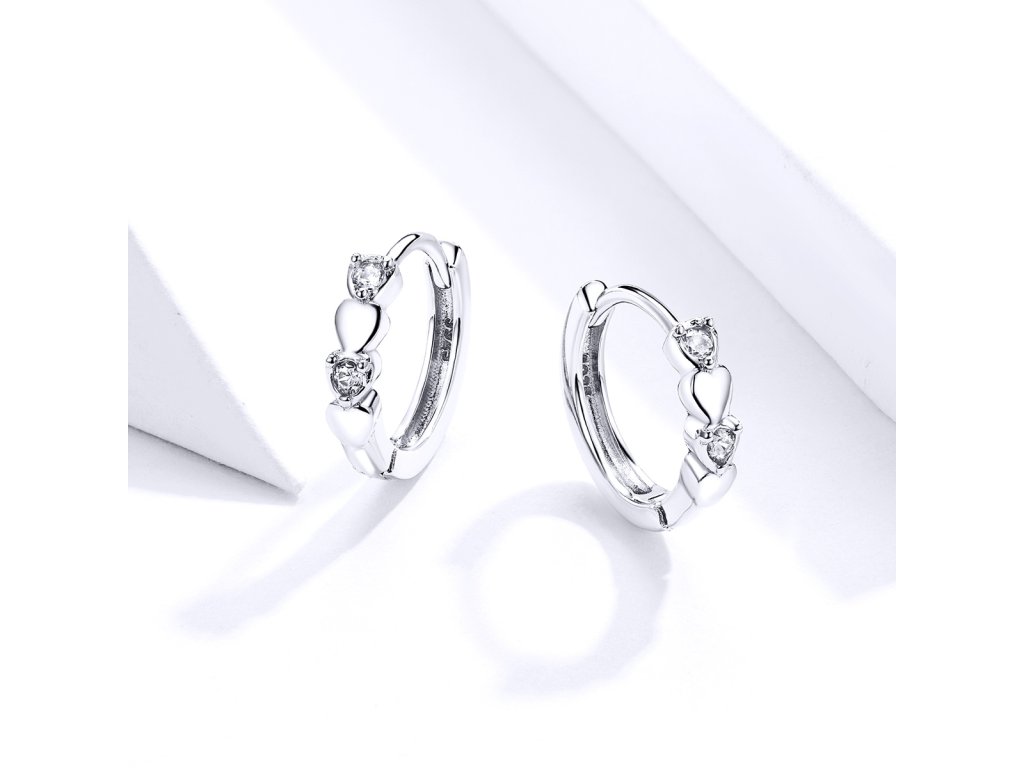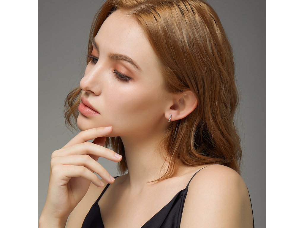 - Malé kruhové strieborné náušnice v dizajne Svietivé krúžky zdobené čírymi trblietavými zirkónmi.