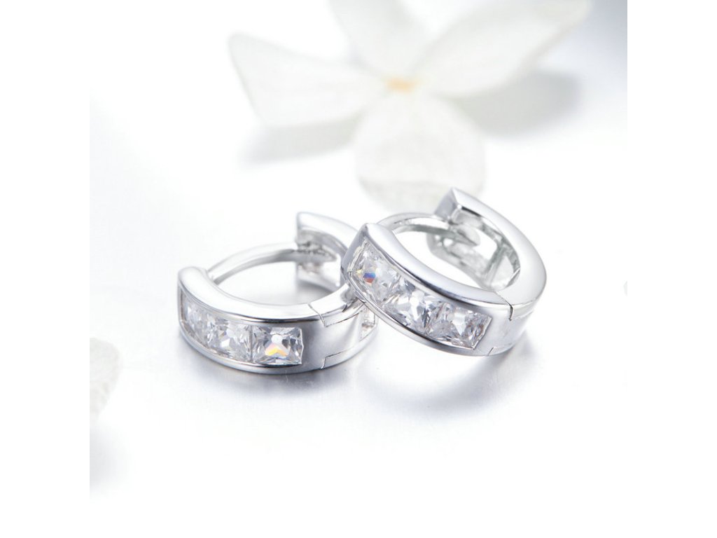 - Strieborné náušnice Svietivo číre krúžky zdobené zirkónmi.