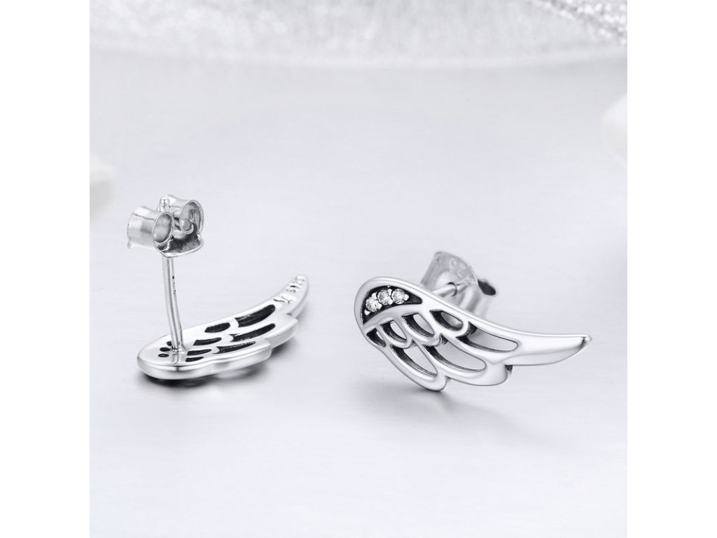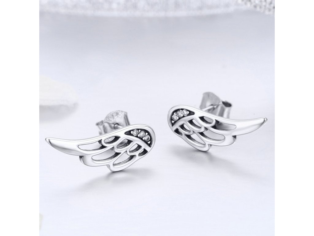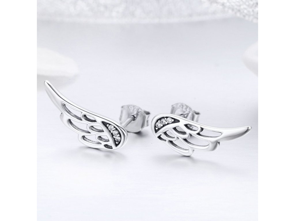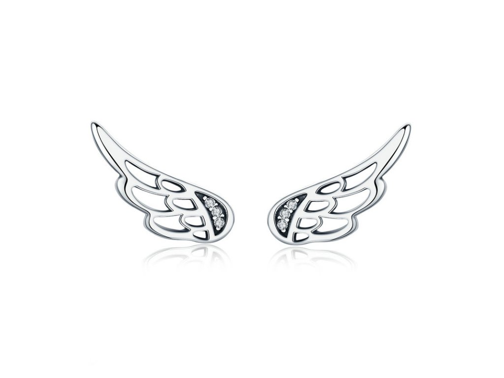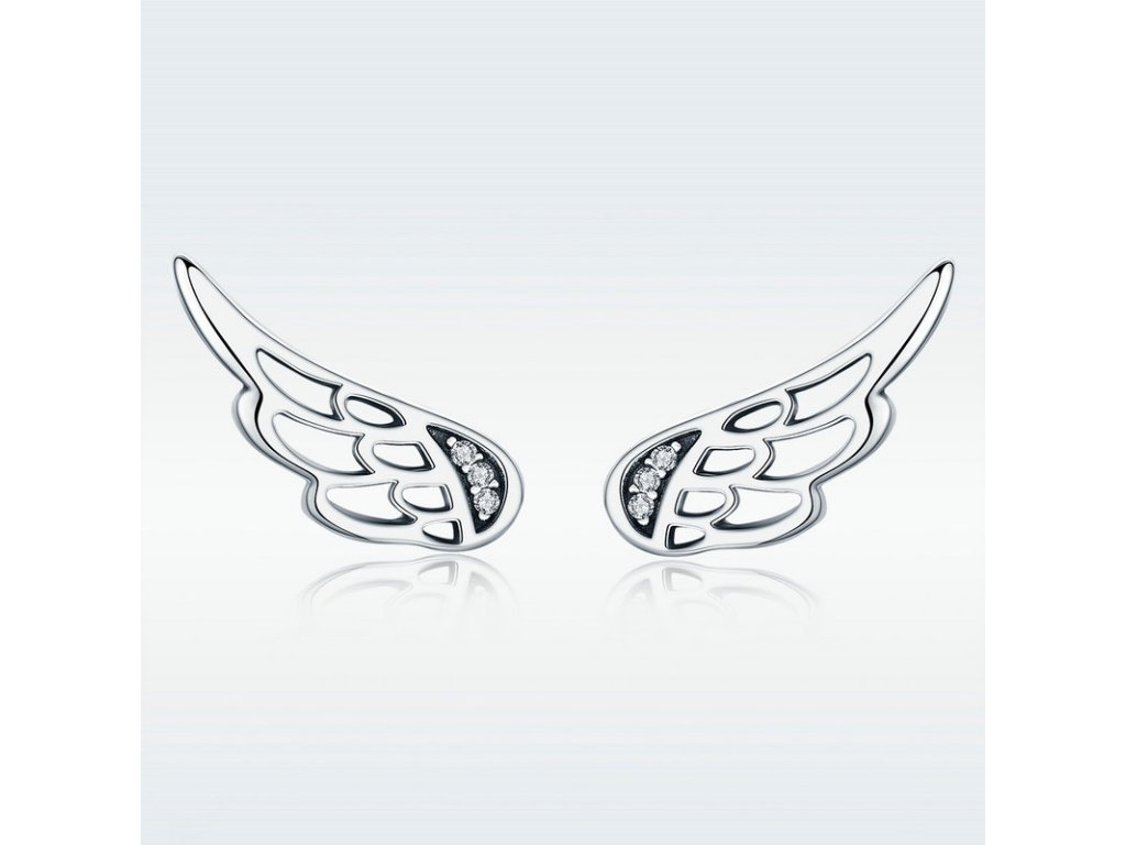 - Luxusné strieborné náušnice v tvare anjelských krídiel s jemnými čírymi zirkónmi.