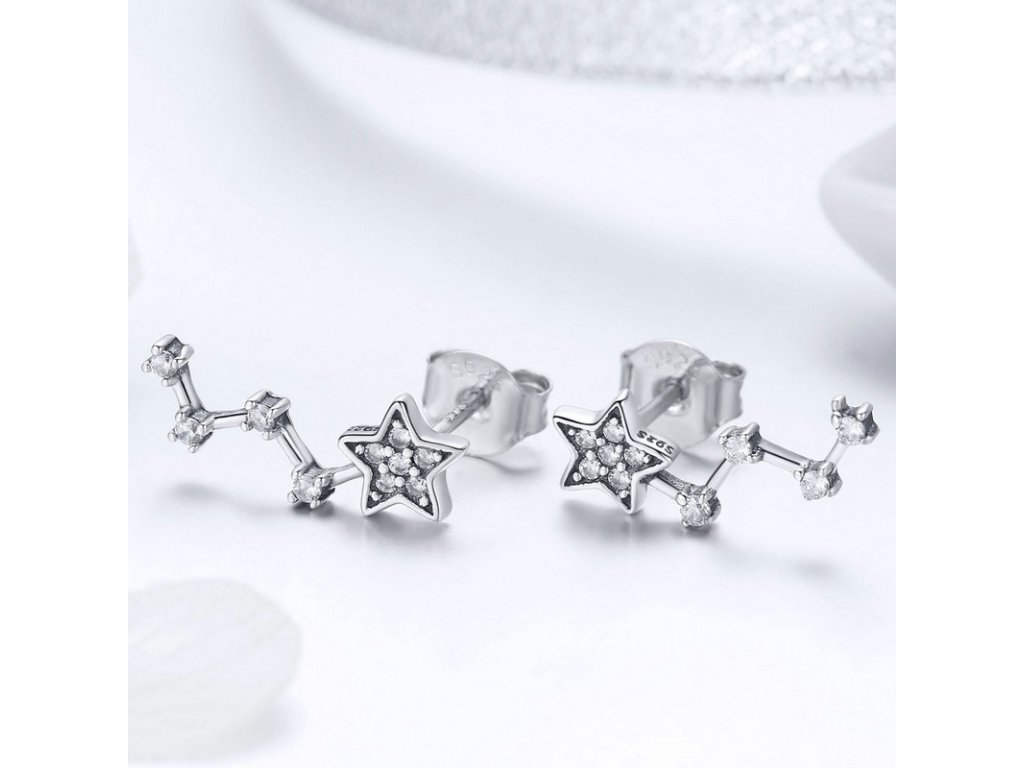 - Luxusné strieborné náušnice v dizajne trblietavej kométy zdobené čírymi zirkónmi. Náušnice sa dajú nosiť klasickým spôsobom alebo cez ucho.