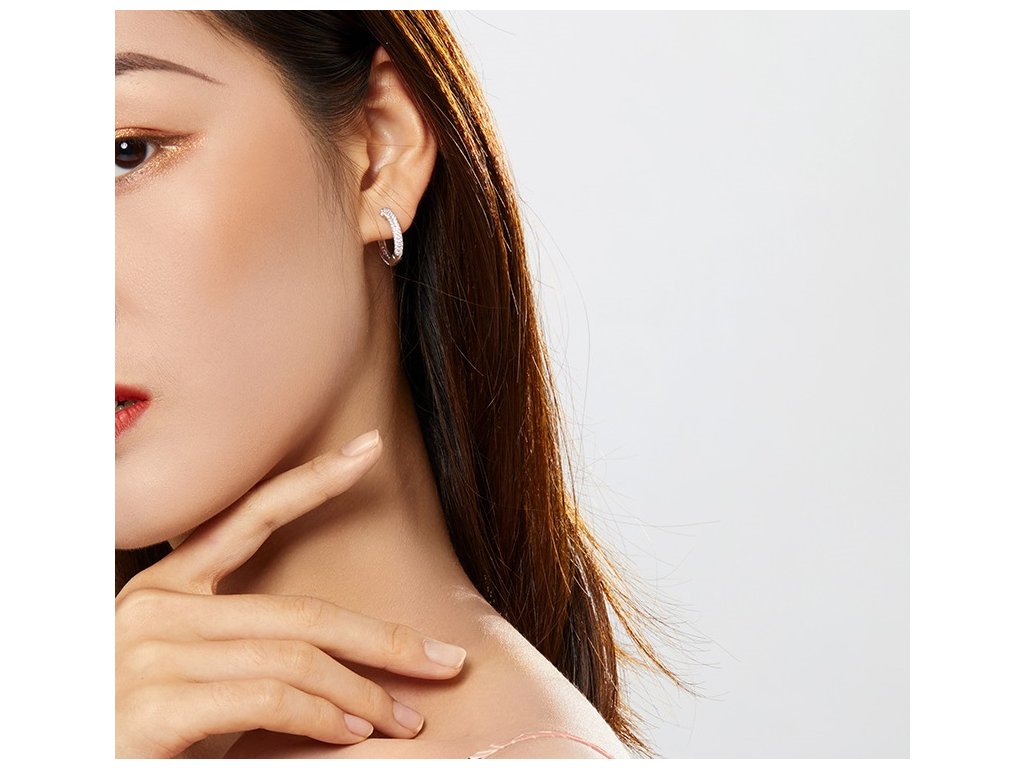- Strieborné náušnice Trblietavé krúžky zdobené čírymi zirkónmi. Originálny dizajn náušníc, kvalitné spracovanie a materiál, ručne dokončené.