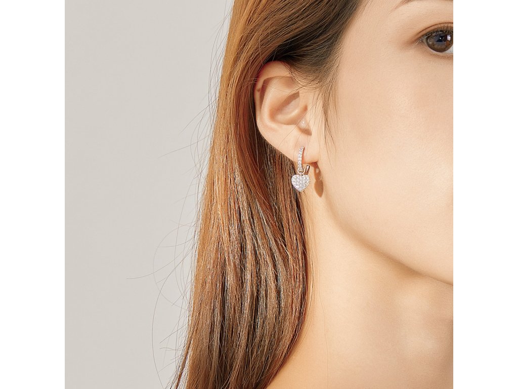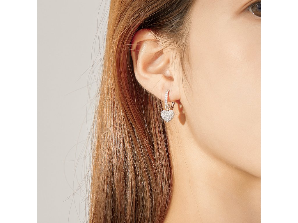 - Strieborné malé kruhové náušnice v dizajne Trblietavých sŕdc v podobe visiacich príveskov posádzaných čírymi zirkónmi.