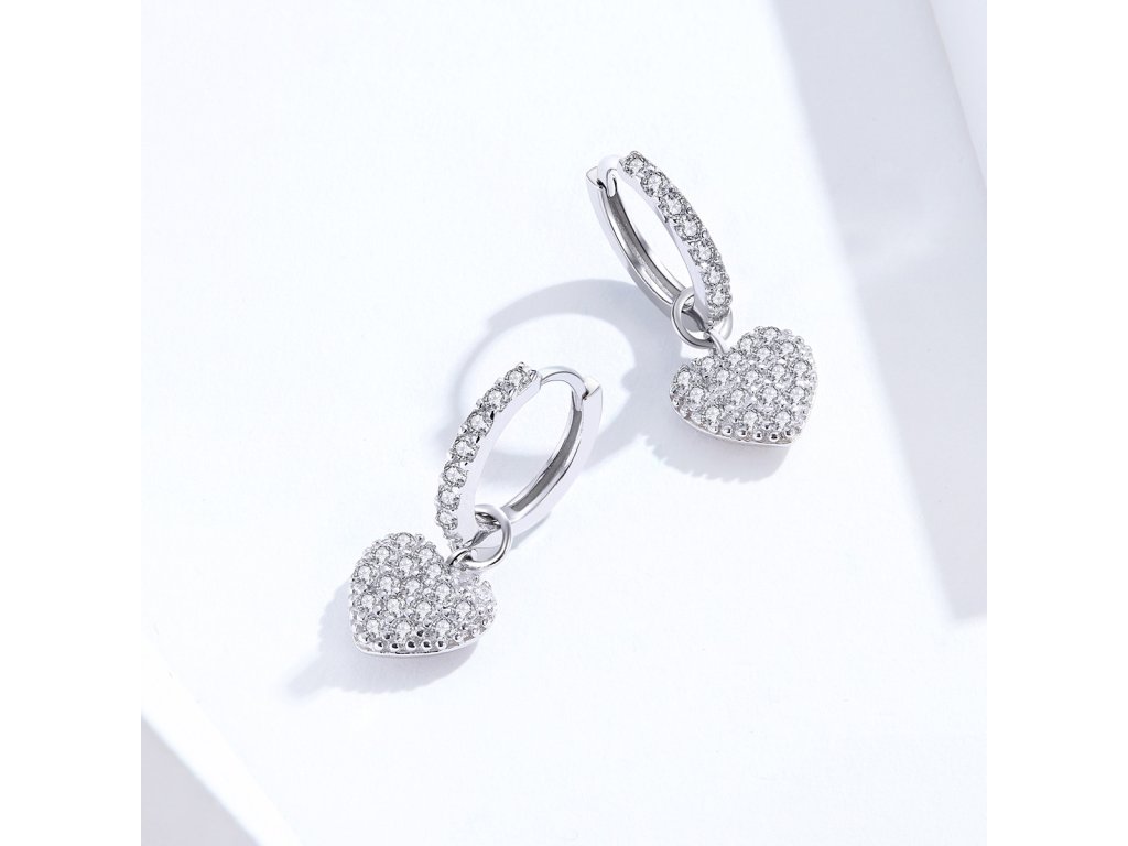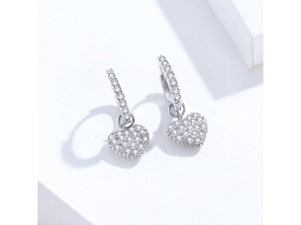 Emporial strieborné náušnice Trblietavé srdcia SCE821