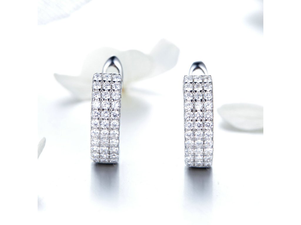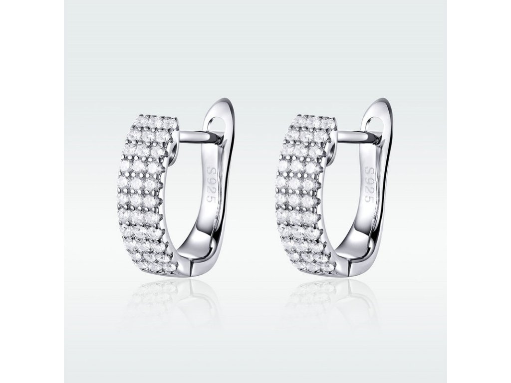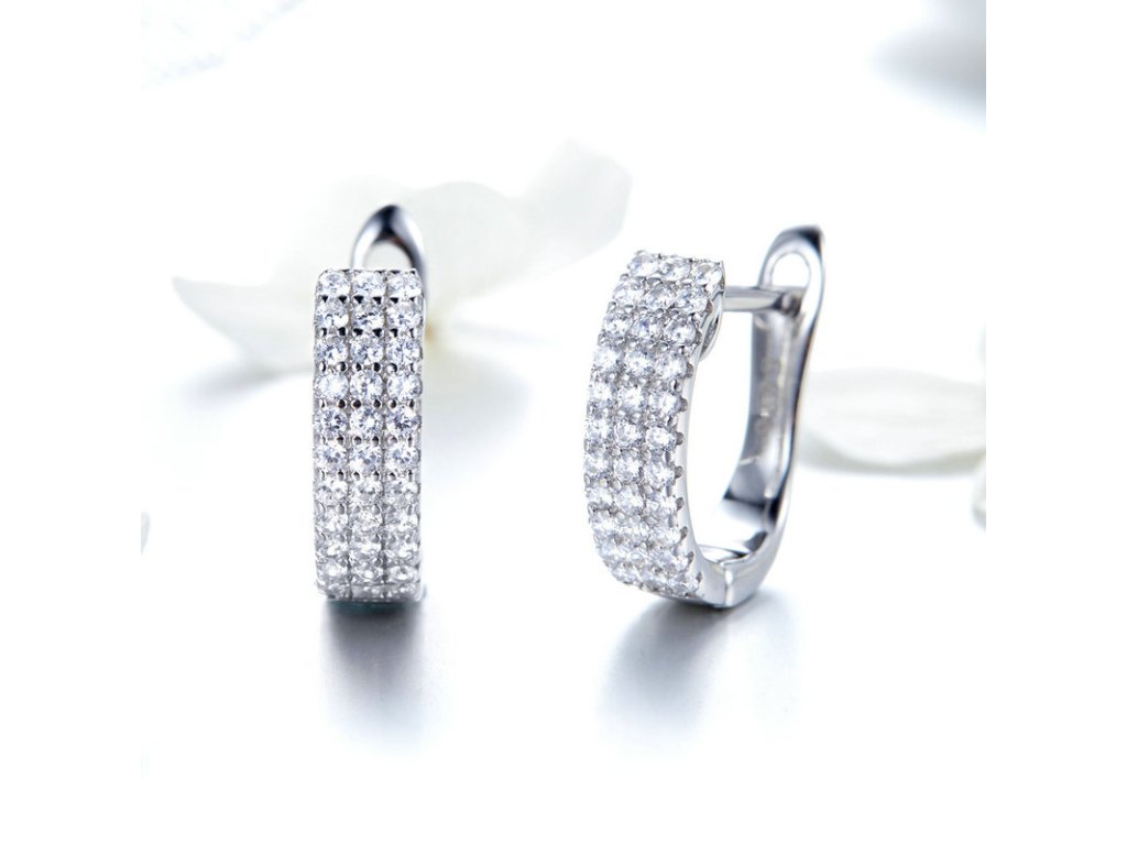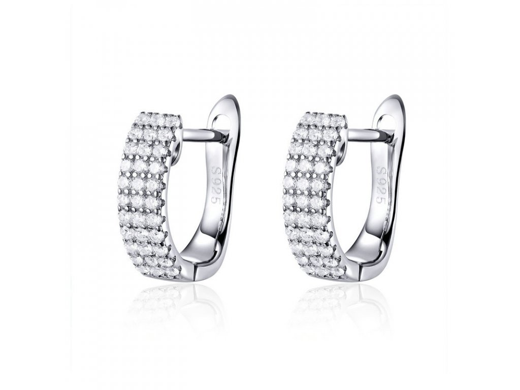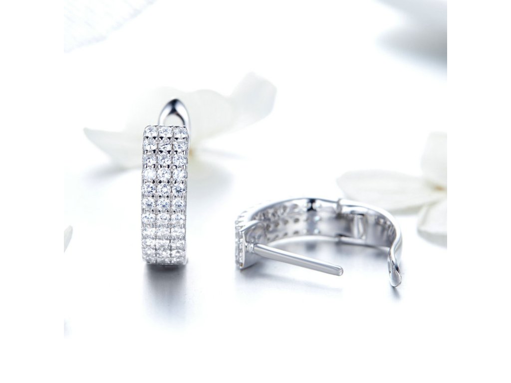 - Luxusné strieborné náušnice v tvare kruhového oválu s trblietavými čírymi zirkónmi. Originálny dizajn náušníc, kvalitné spracovanie a materiál, ručne dokončené.