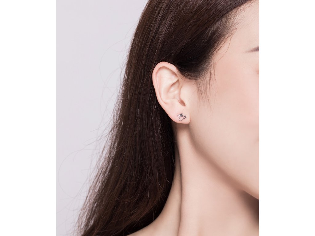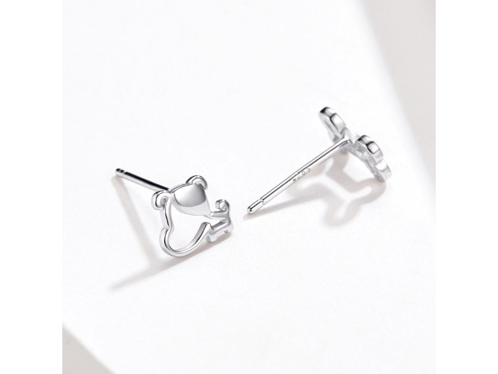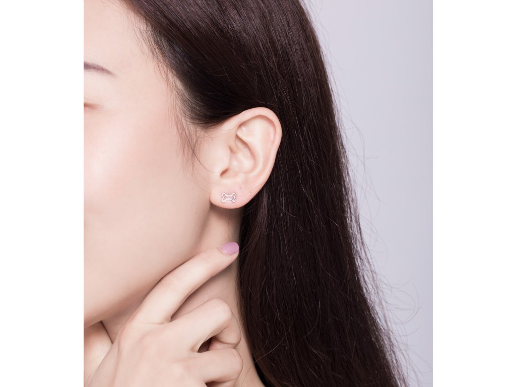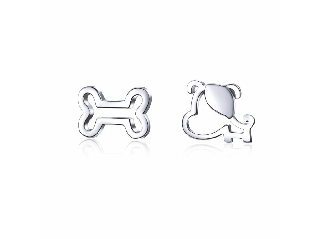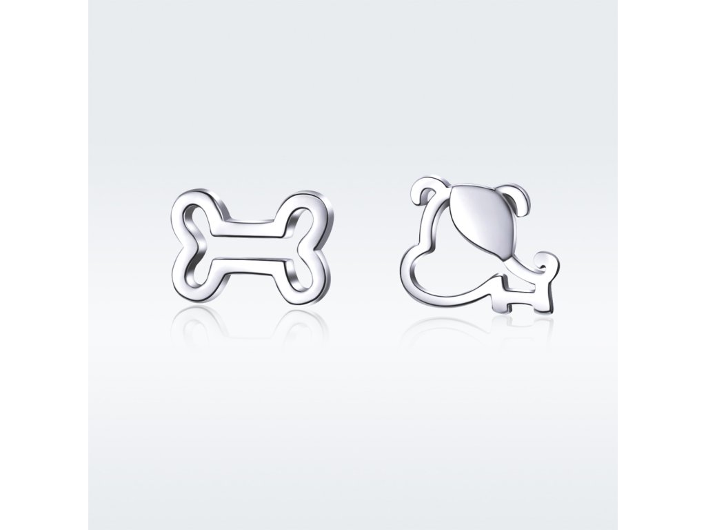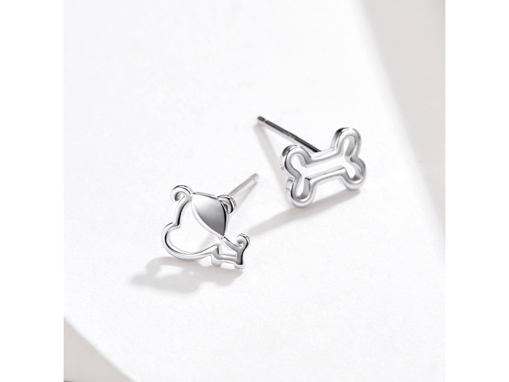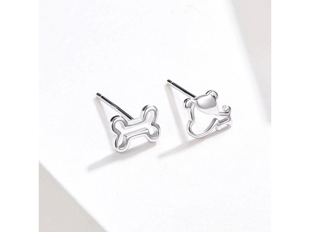 - Strieborné kôstkové náušnice v dizajne roztomilého psíka a jeho kocky.
