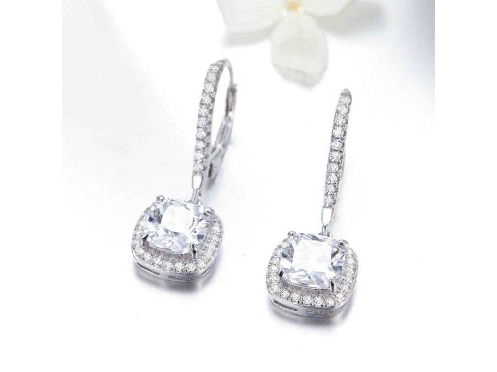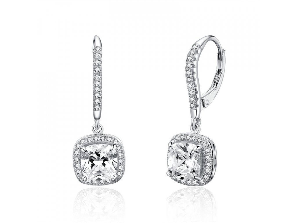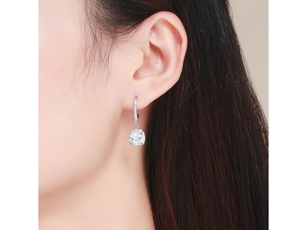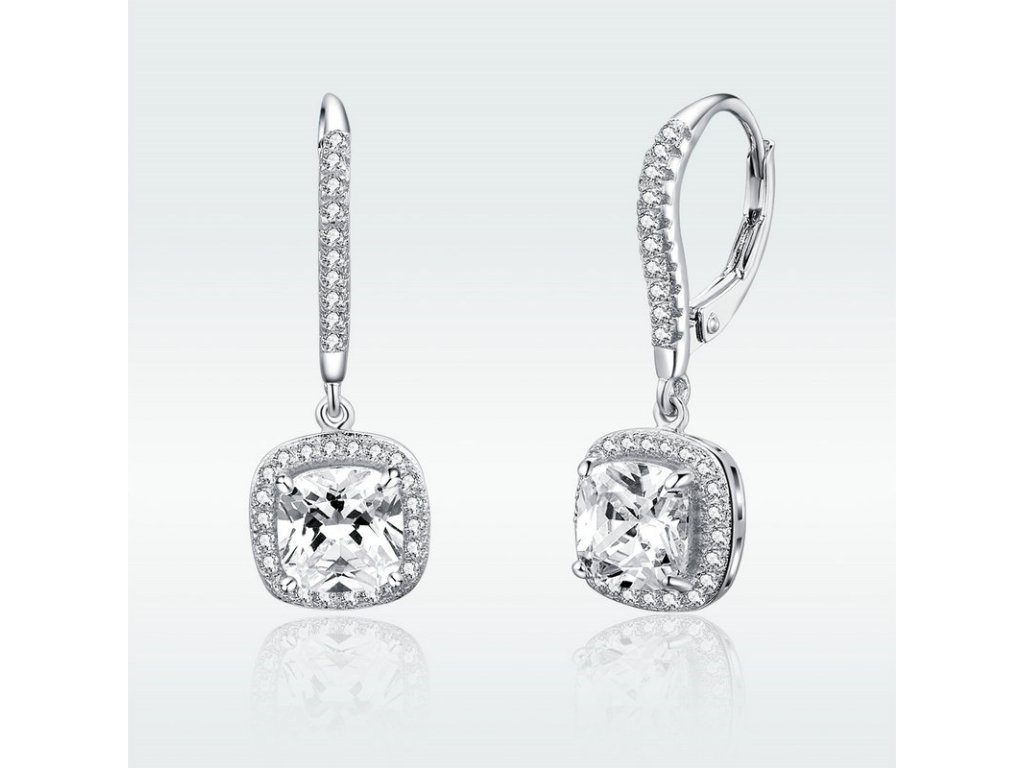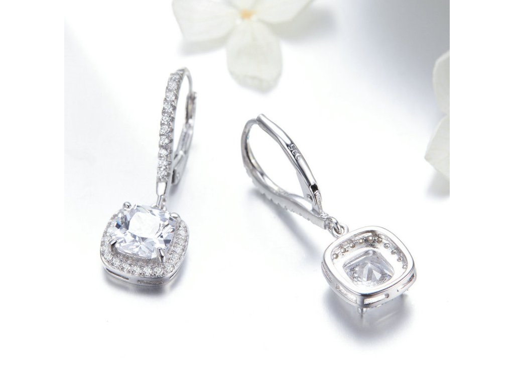 - Strieborné visiace náušnice v dizajne Nadčasové elegancie zdobené čírymi trblietavými zirkónmi. Originálny dizajn náušníc, kvalitné spracovanie a materiál, ručne dokončené.