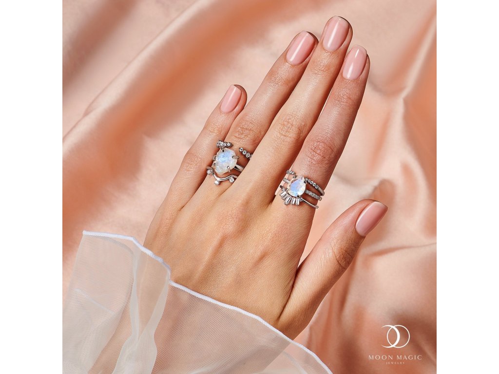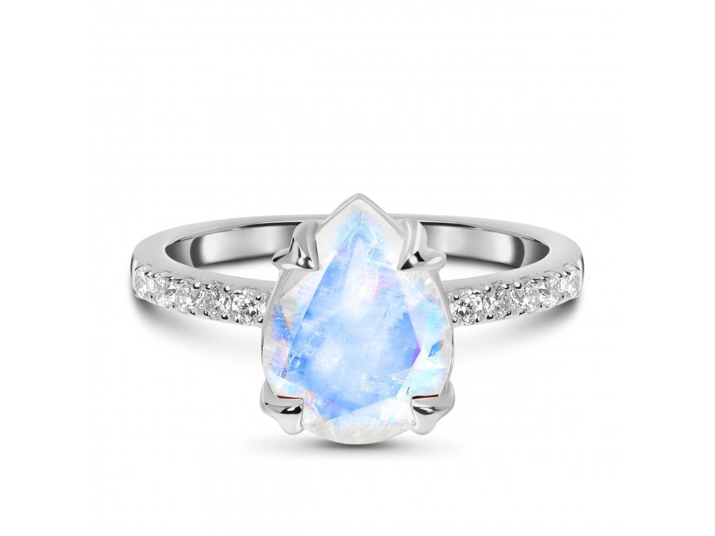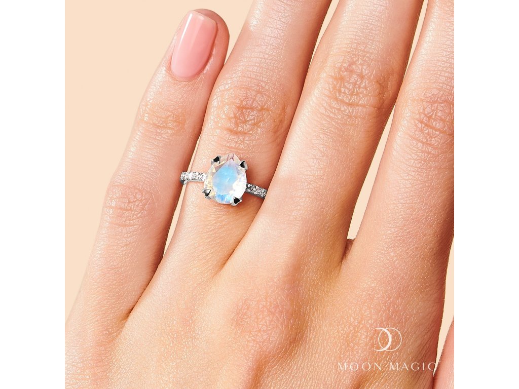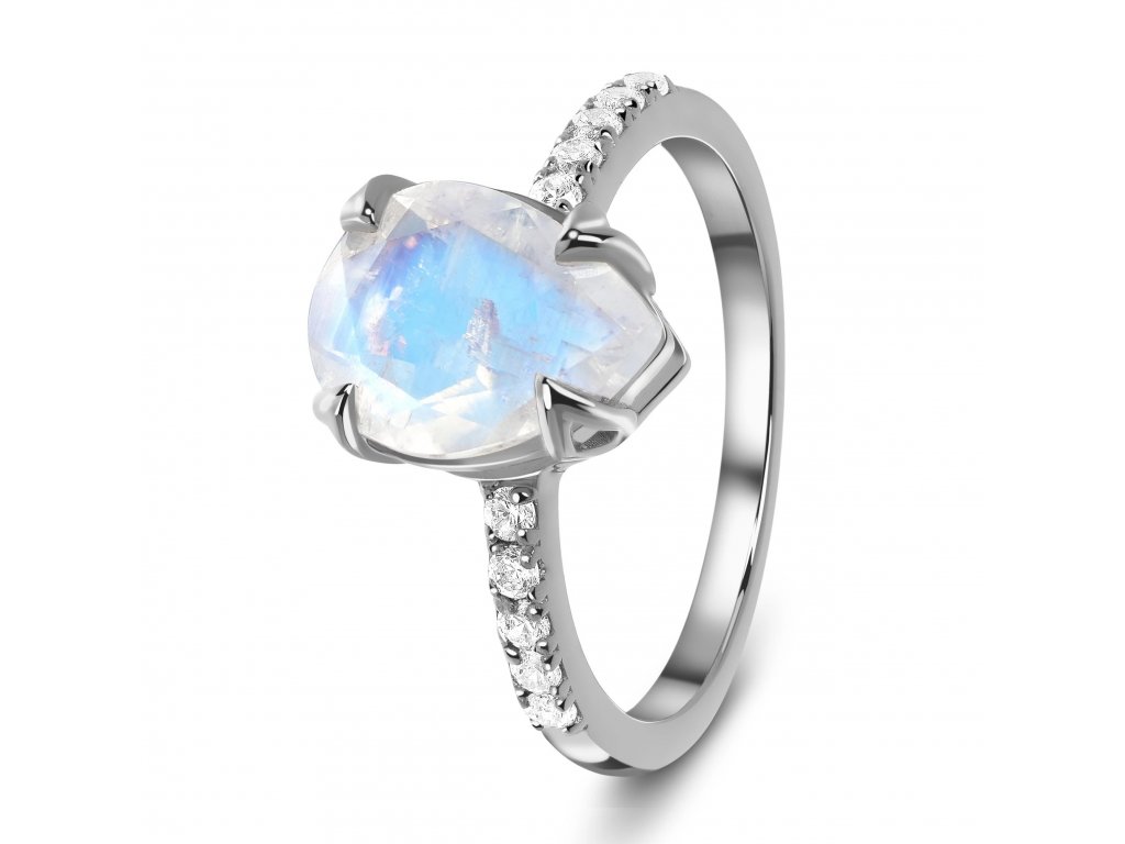 Luxusný romantický strieborný prsteň zdobený veľkým mesačným kameňom v tvare kvapky