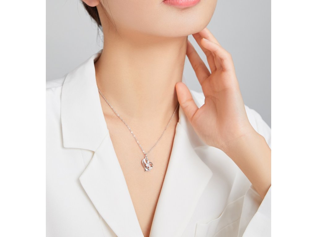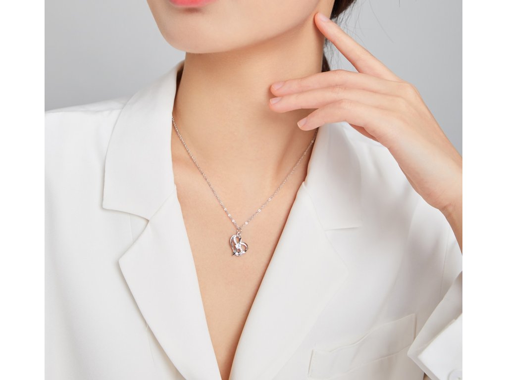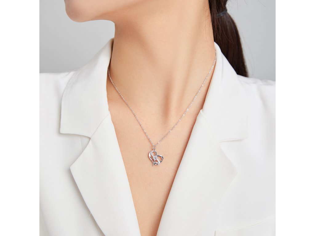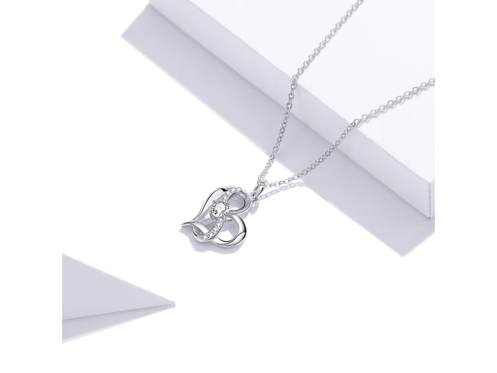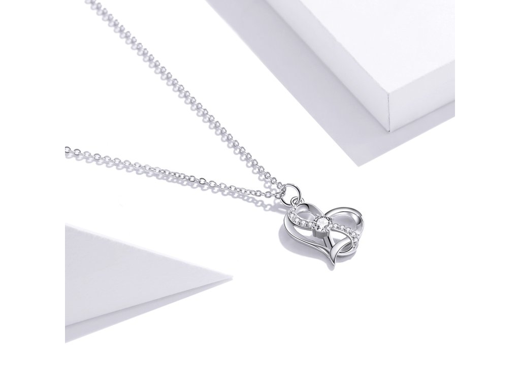 - Strieborný nastaviteľný náhrdelník v tvare milovaného srdca. Stred srdca tvorí symbol nekonečna s ručne posádzanými trblietavými zirkónmi a veľkým brúseným zirkónom uprostred. Kvalitné striebro zaručí dokonalý lesk šperku a vy zažiarite za každých okolností.