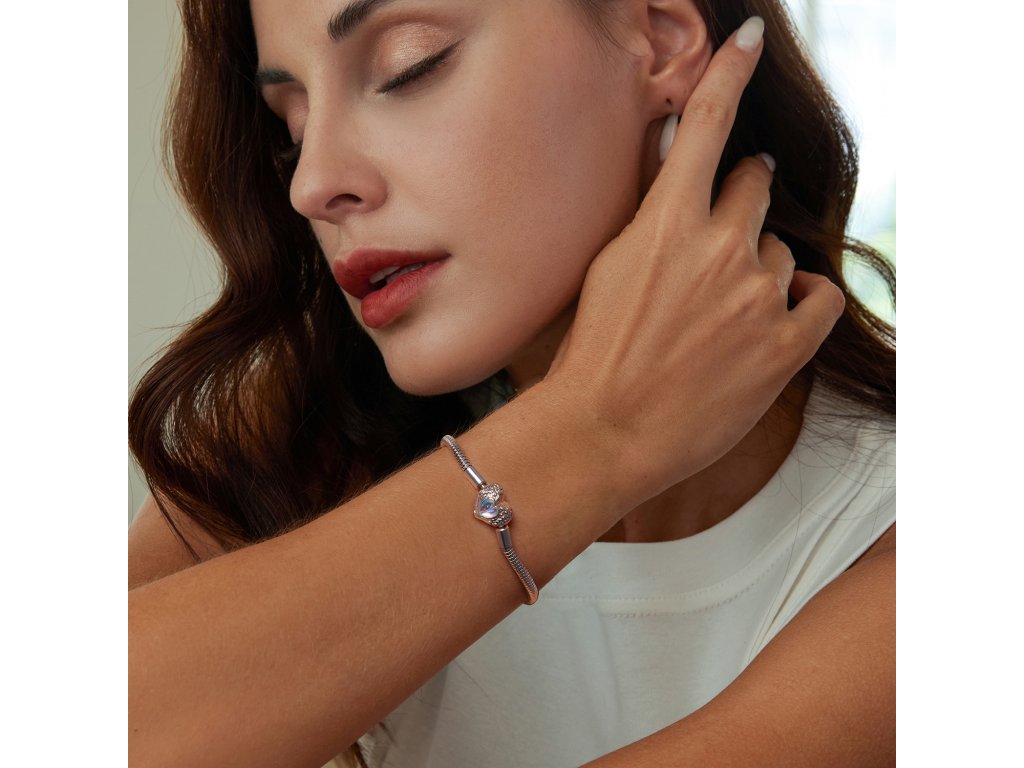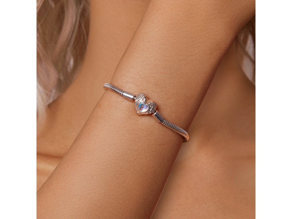 Emporial strieborný náramok na prívesky Dúhové mesačné srdce BSB163