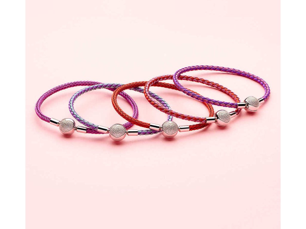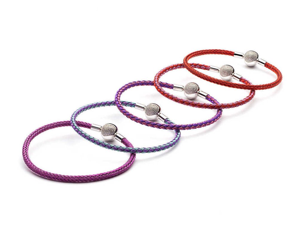 Emporial strieborný náramok na prívesky Prepletený čerešňovo červený 4005