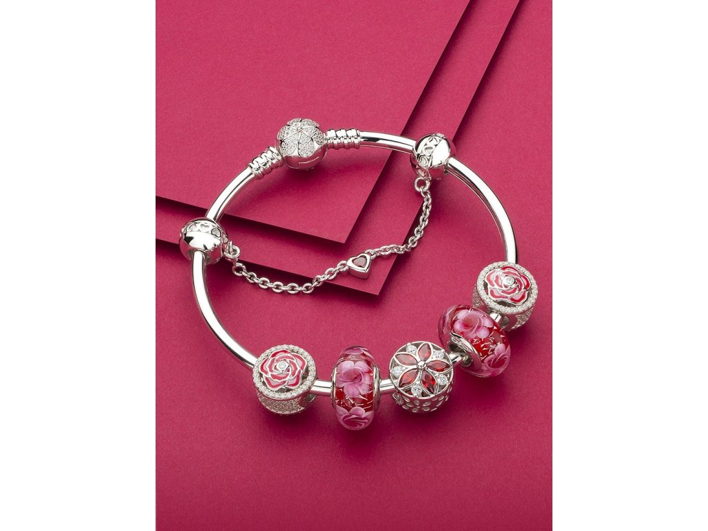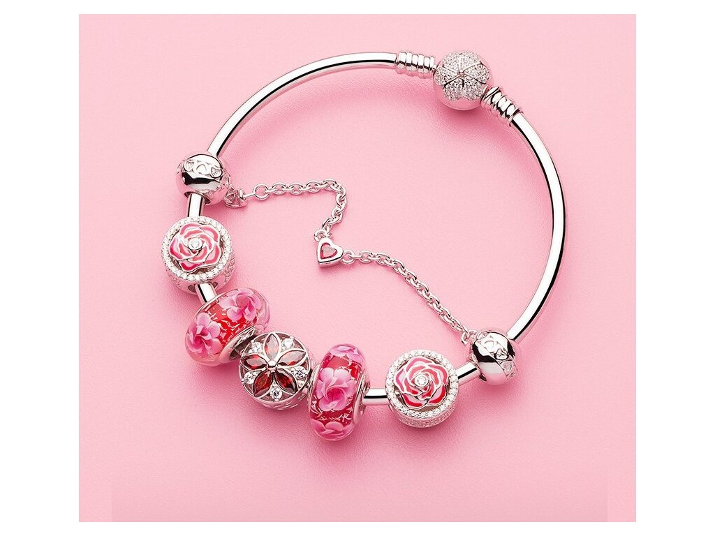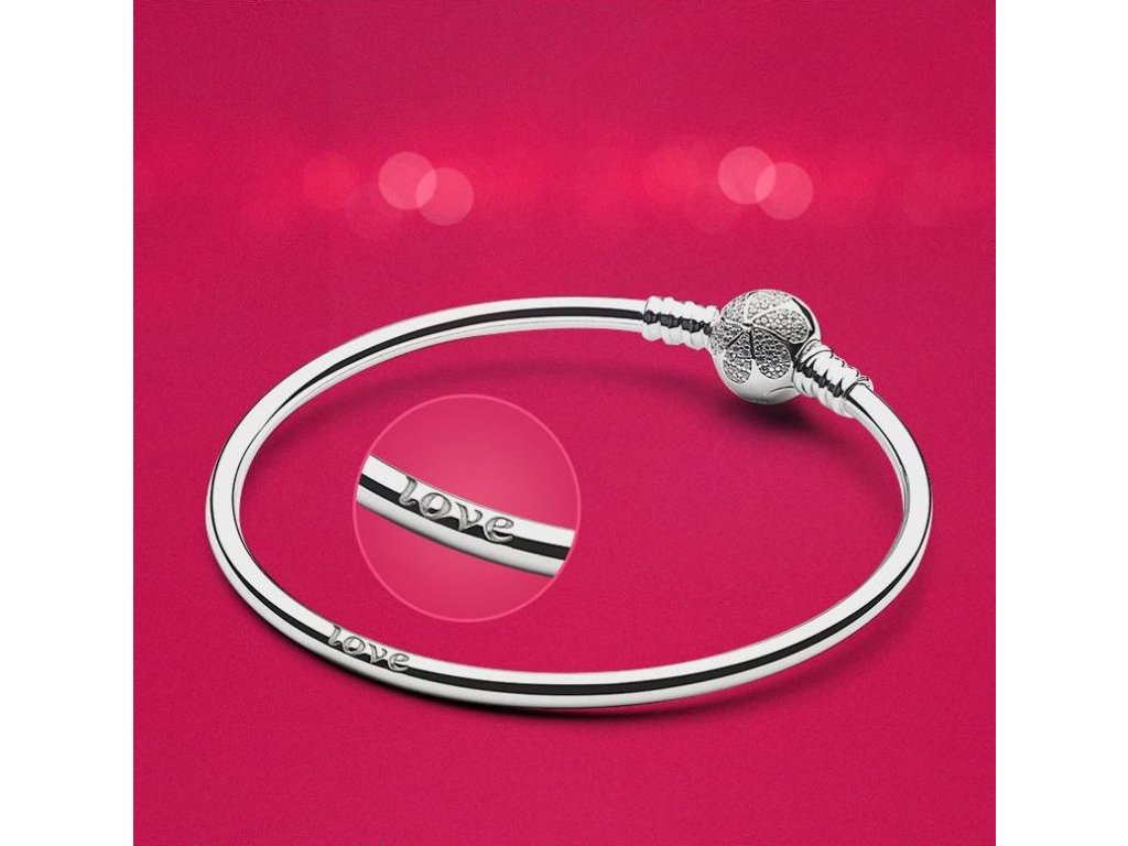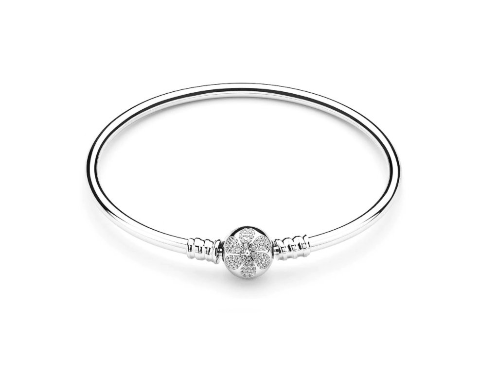 - Luxusný strieborný pevný náramok na prívesky s korálkovými zapínaním zdobeným krásnu sedmokráskou s čírymi trblietavými zirkónmi.