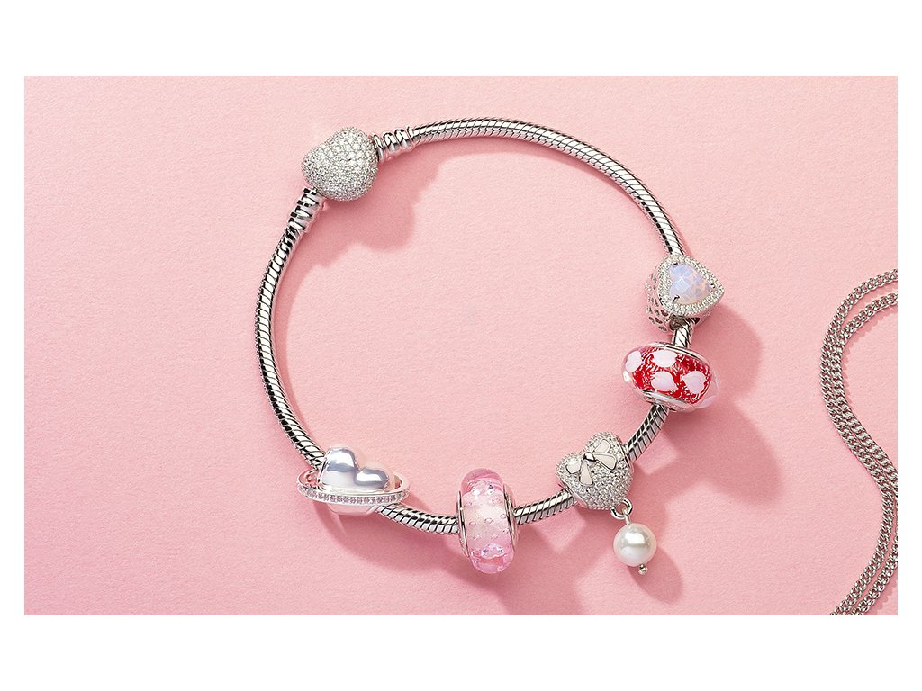 Emporial strieborný náramok na prívesky Trblietavé srdce 4010