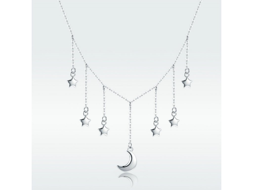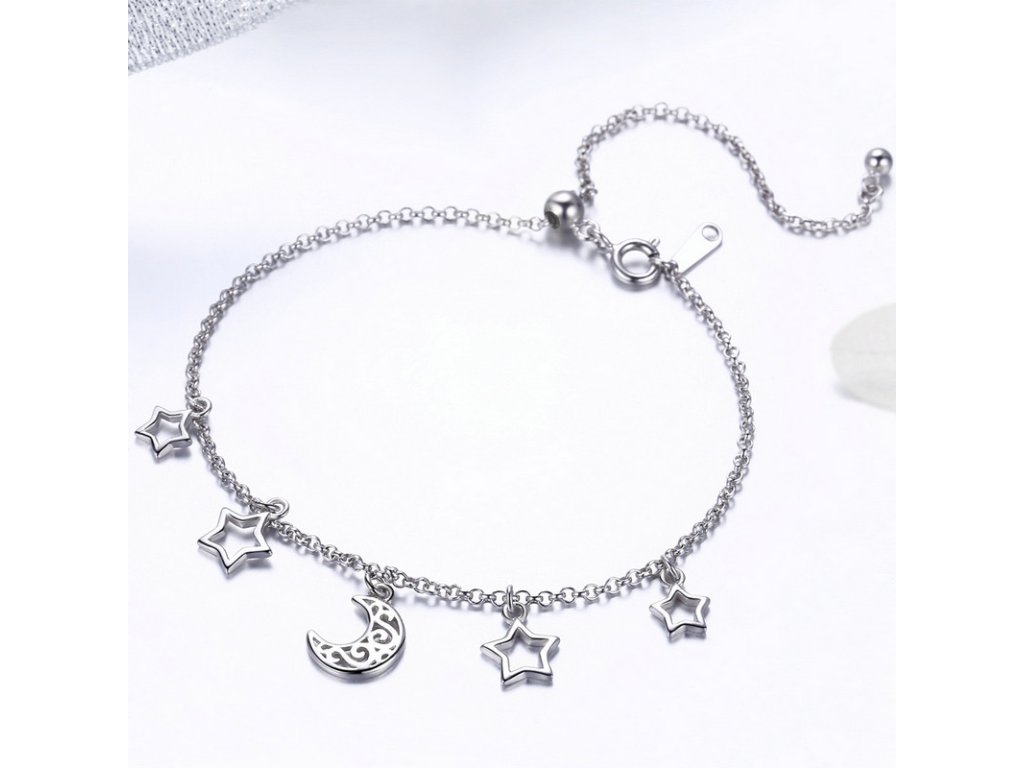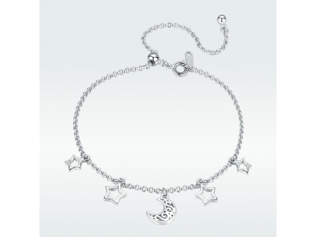 - Jemný strieborný náramok v dizajne padajúcich hviezd doplnený prívesky / korálky hviezd a mesiaca.