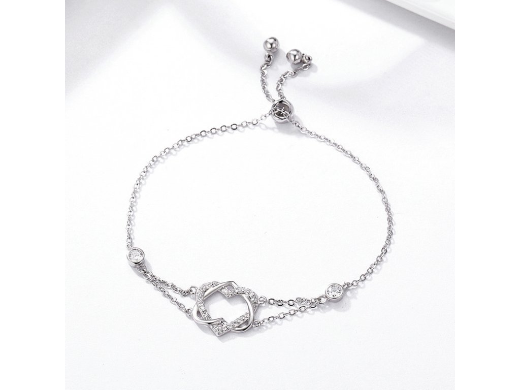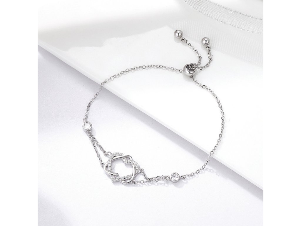- Luxusný a prepracovaný náramok v dizajne dvoch prepletených sŕdc. Náramok ďalej disponuje ručne vsadenými čírymi a trblietavými zirkónmi. Obdarujte seba alebo svojich blízkych týmto strieborným kúzlom a zlaďte ho s našimi ostatnými šperkami značky Royal Fashion. Buďte originálny, buďte jedinečná! *