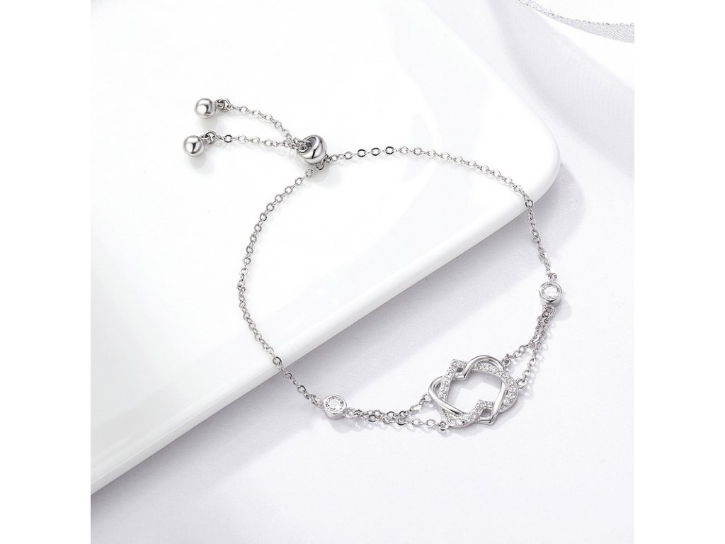 Emporial strieborný náramok Prepletené srdce SCB022