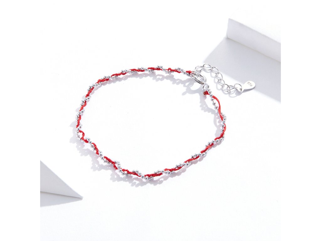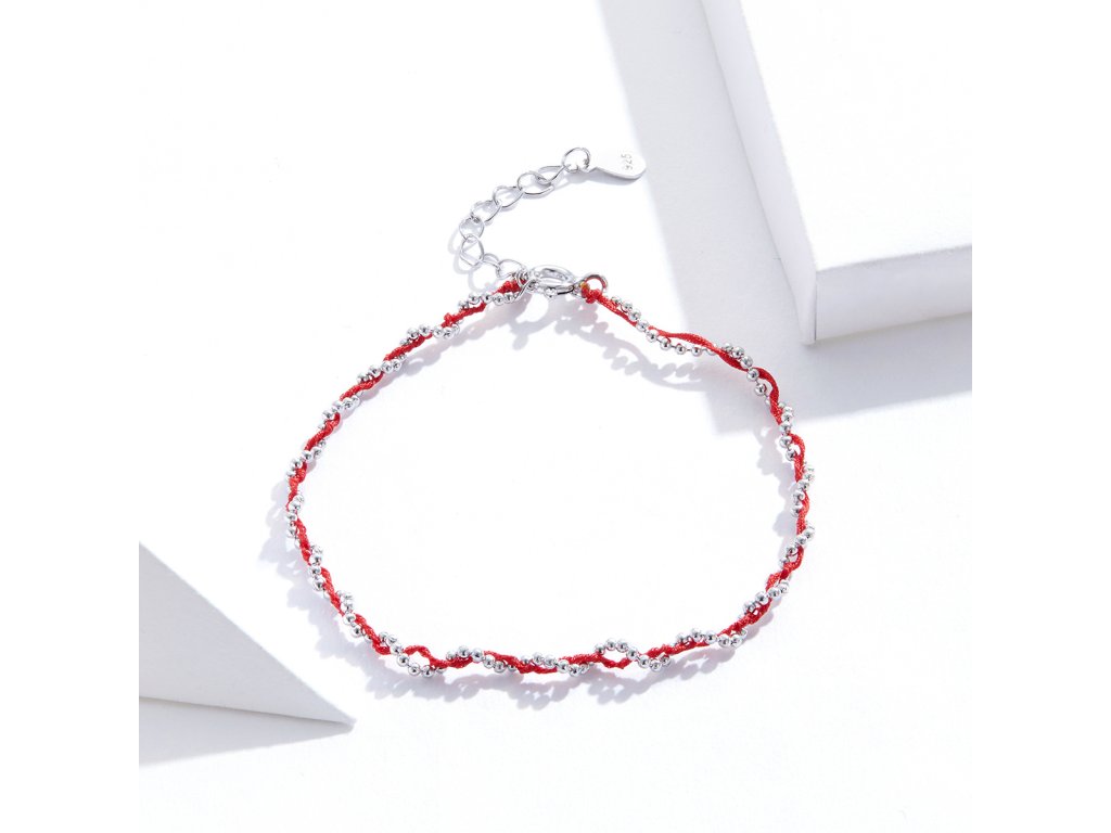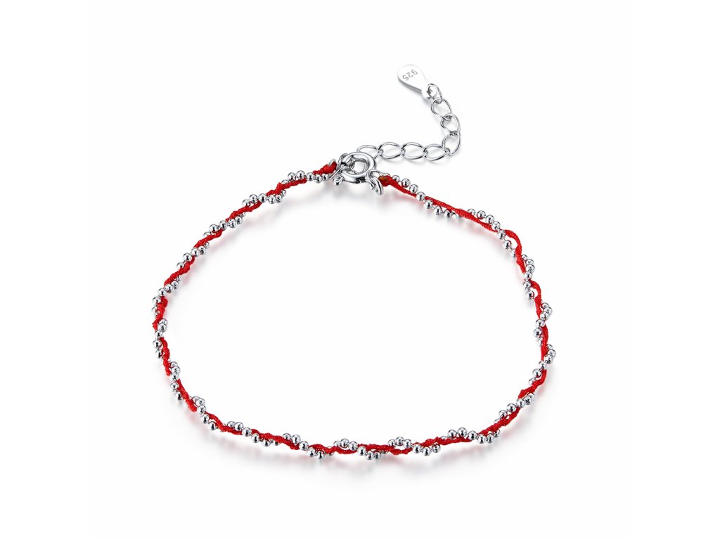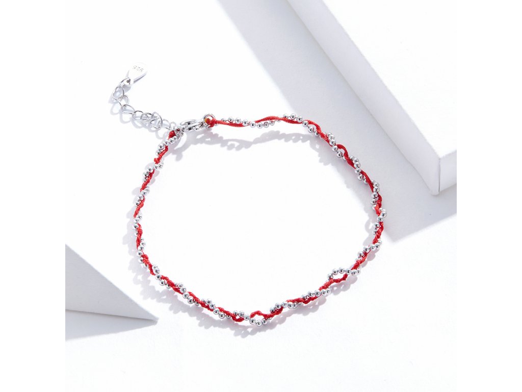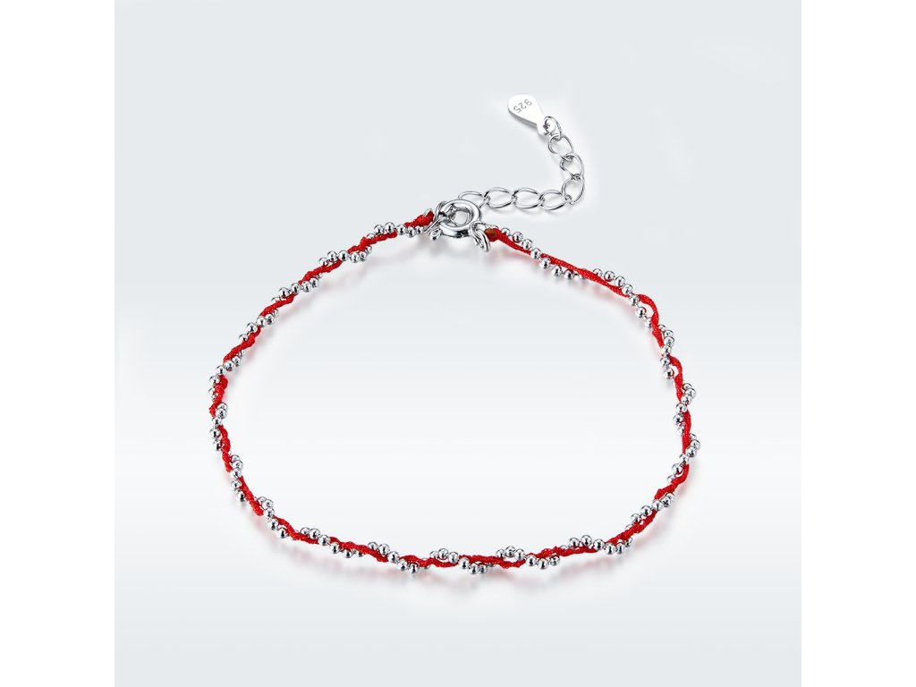 - Strieborný nastaviteľný náramok z červeného pleteného lanka v kombinácii so striebrom.