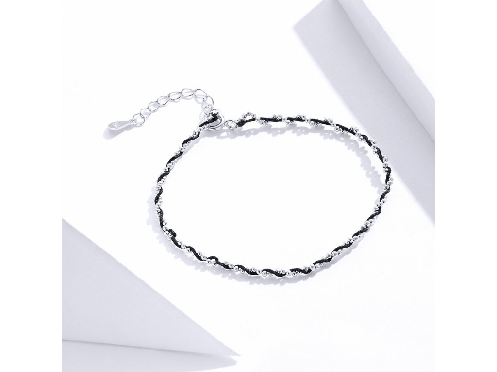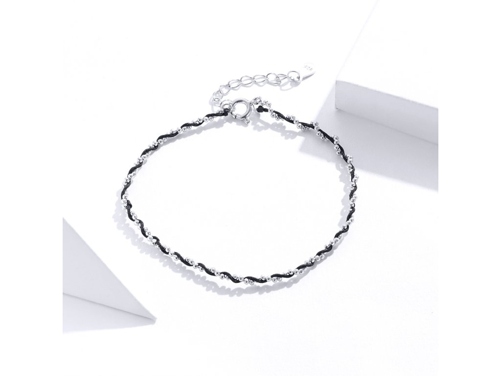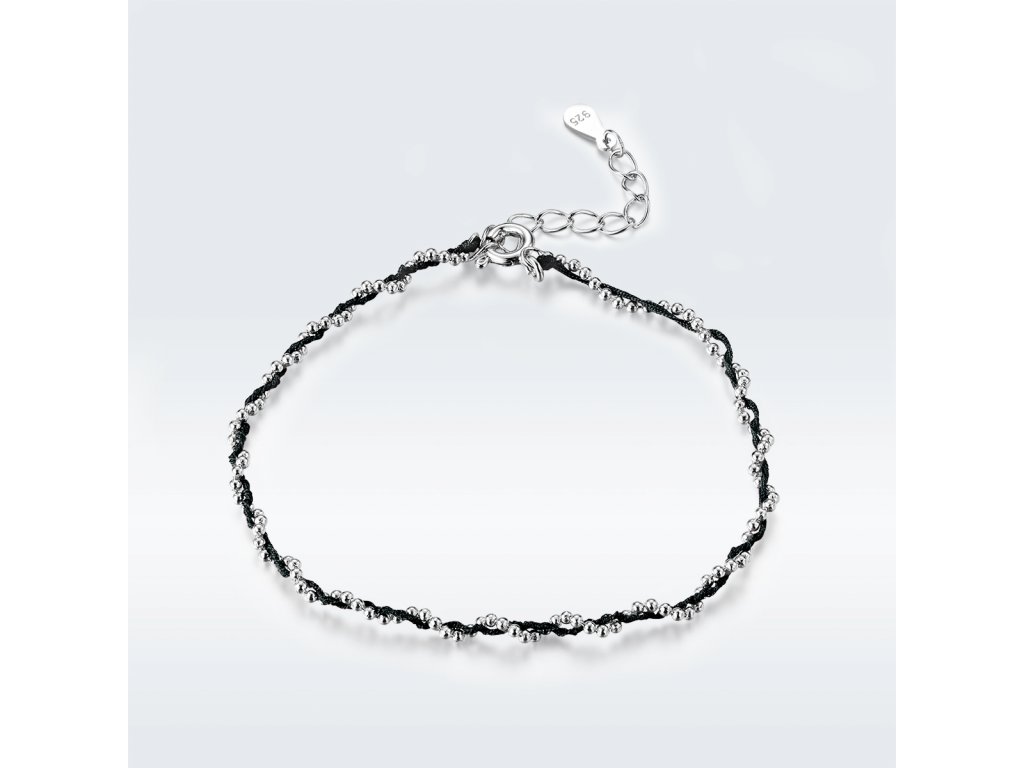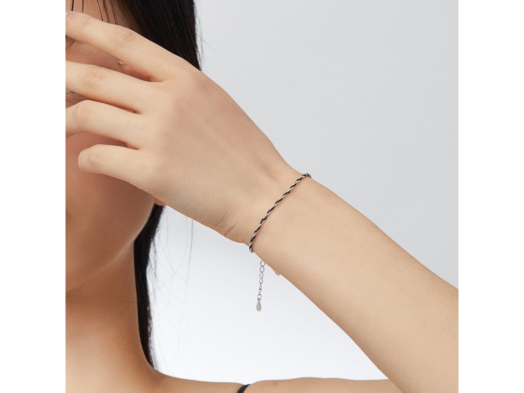 - Strieborný nastaviteľný náramok z čierneho pleteného lanka v kombinácii so striebrom.