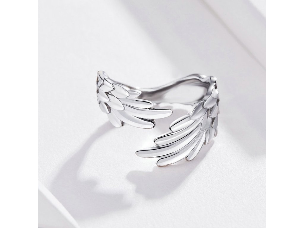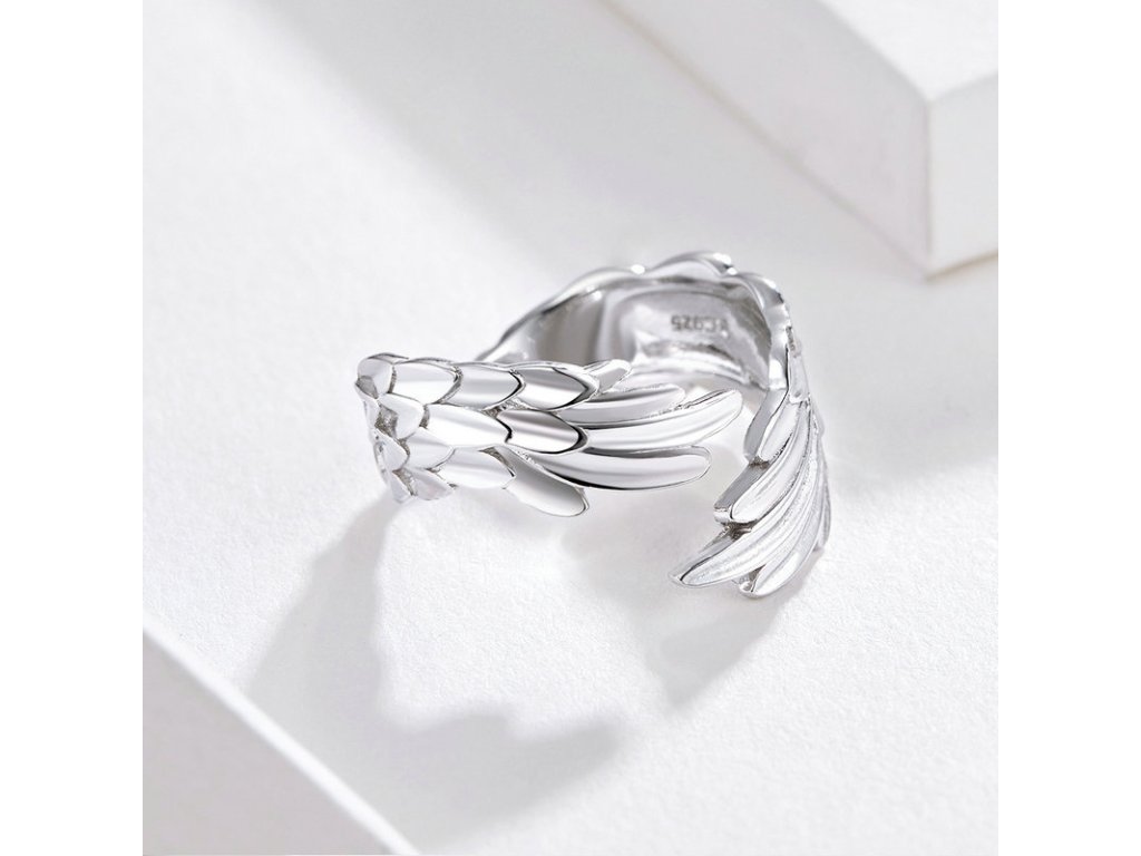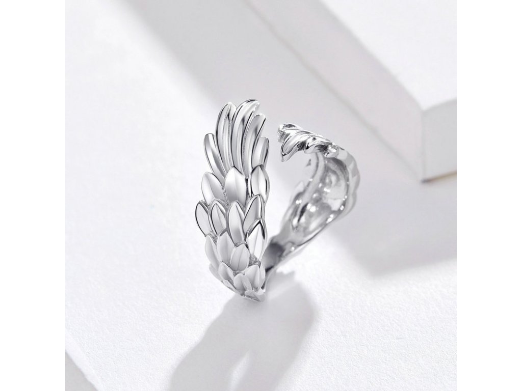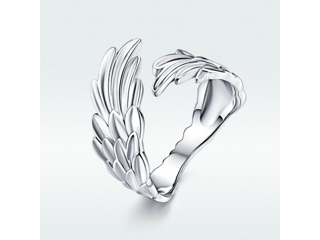 - Strieborný nastaviteľný a prepracovaný prsteň v dizajne Anjelských krídiel. Originálny dizajn prsteňa, kvalitné spracovanie a materiál, ručne dohotovené.