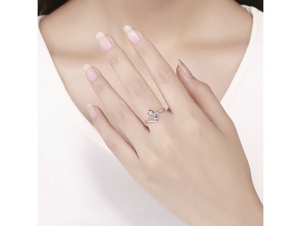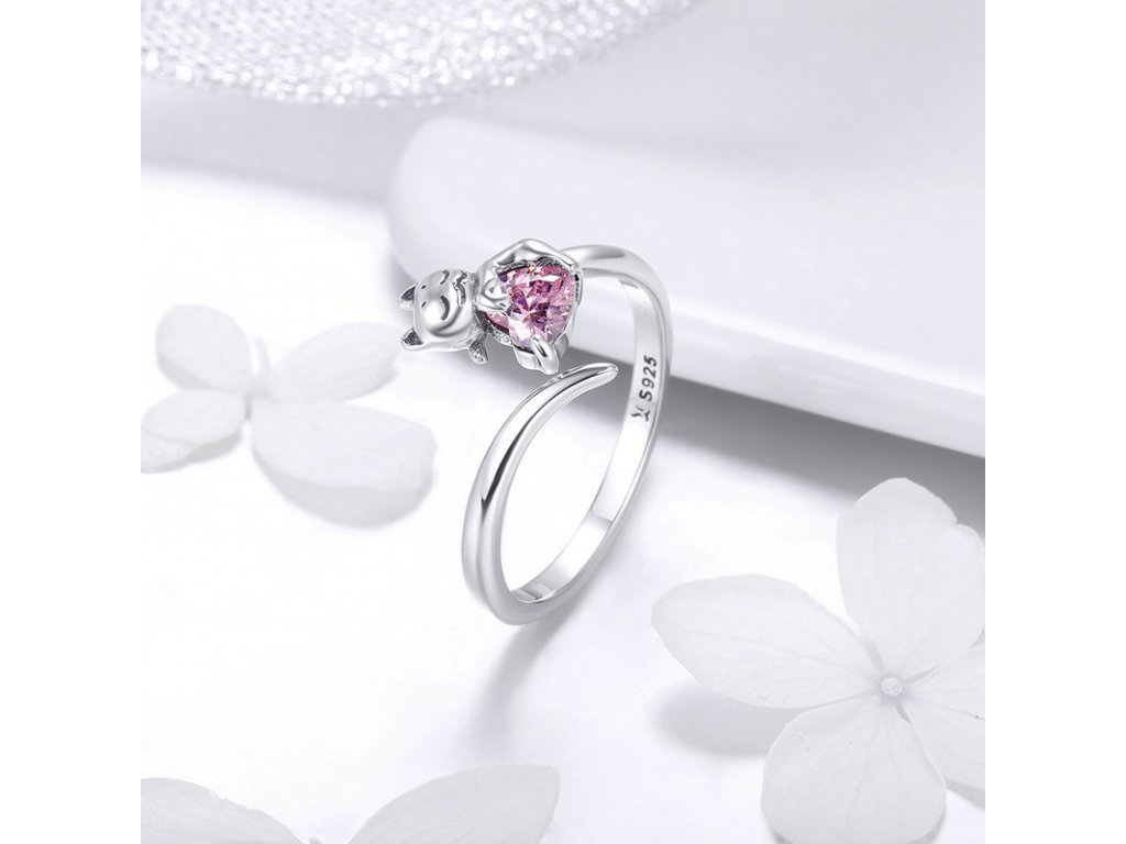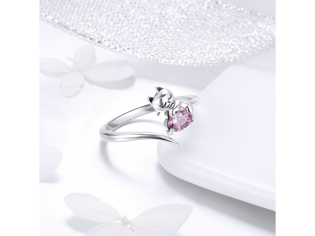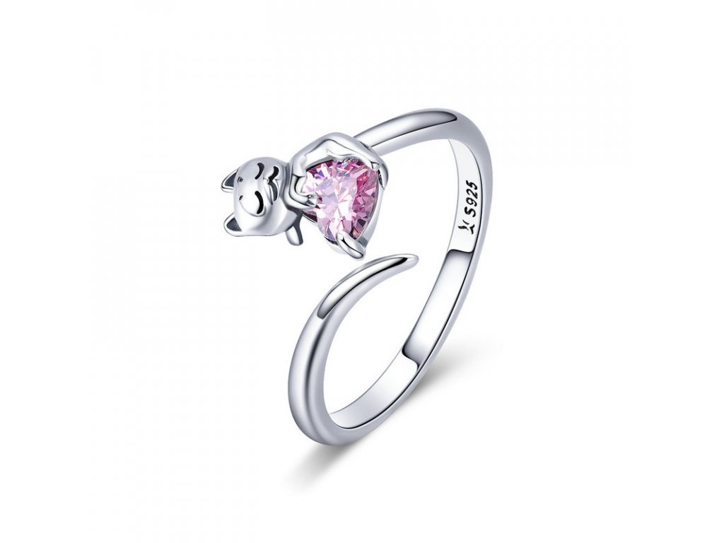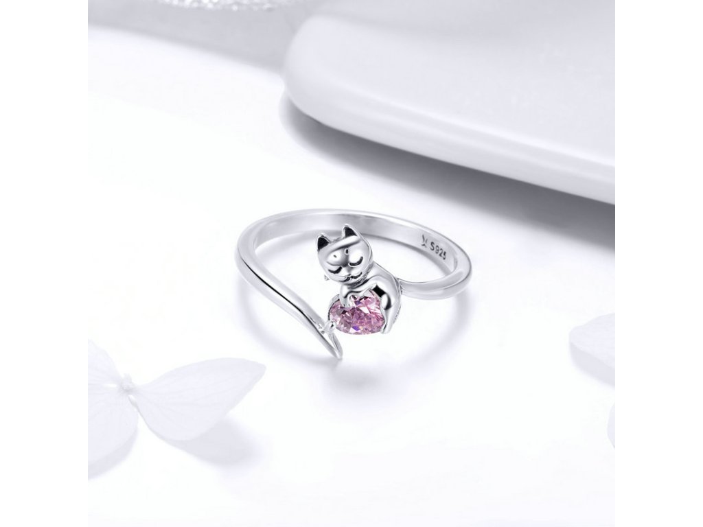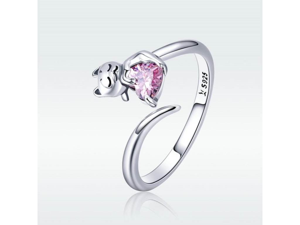 - Luxusný a prepracovaný strieborný prsteň v dizajne milovanej mačky zdobený zirkónom.