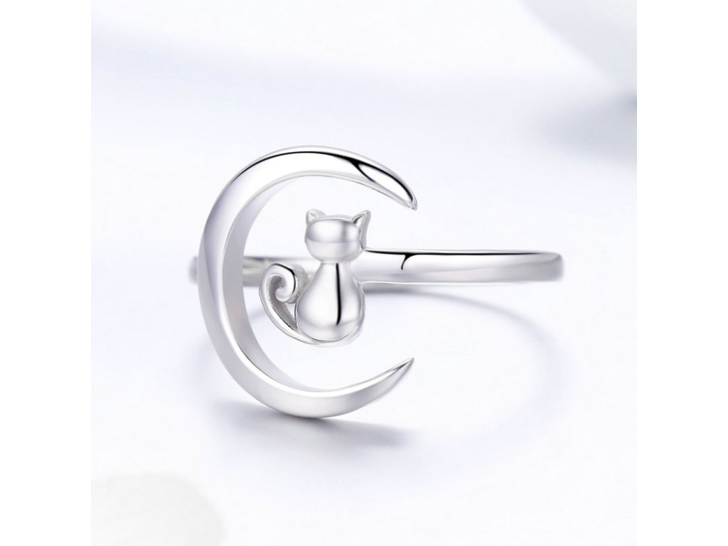 - Strieborný a originálny a prepracovaný strieborný prsteň v dizajne milovanej mačky.