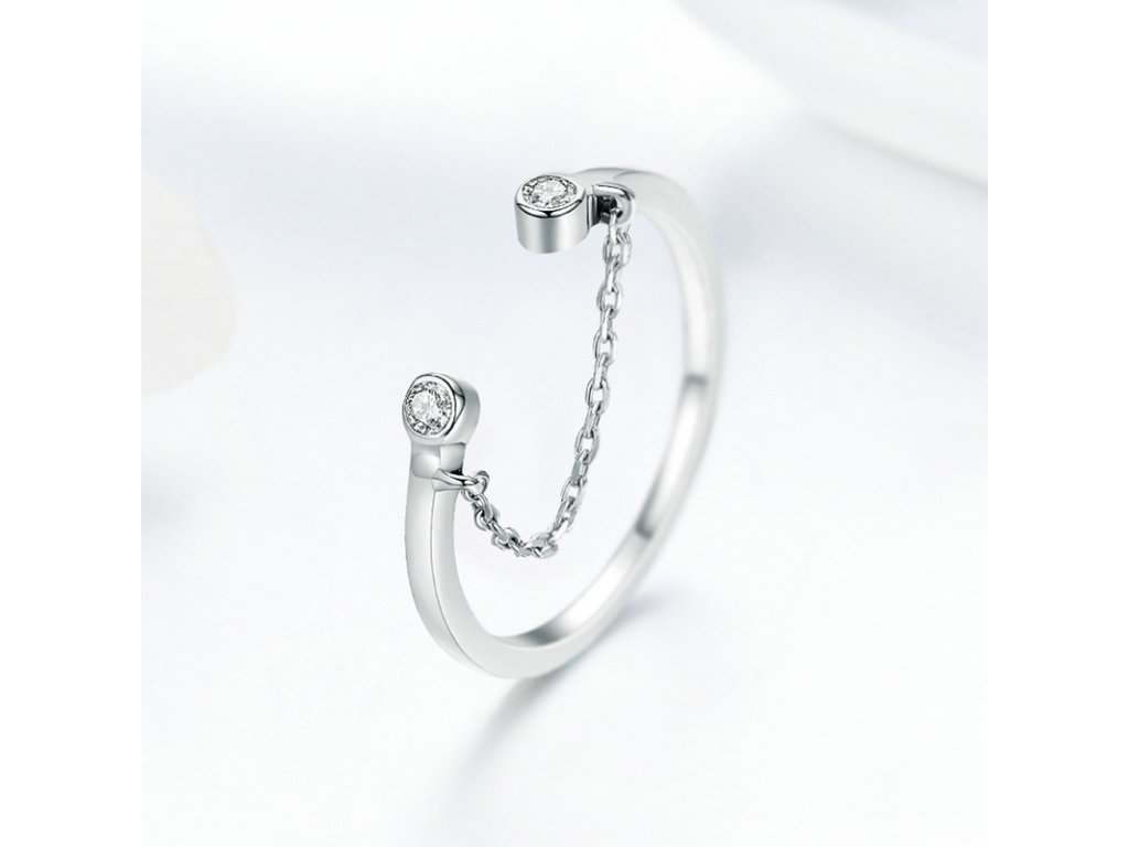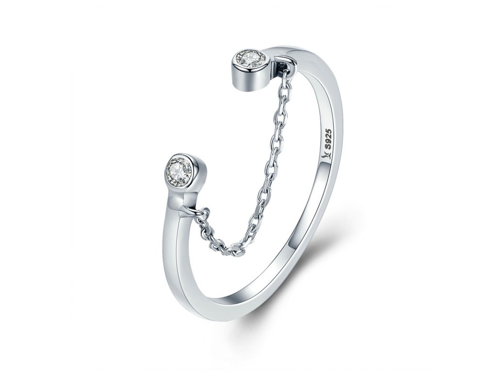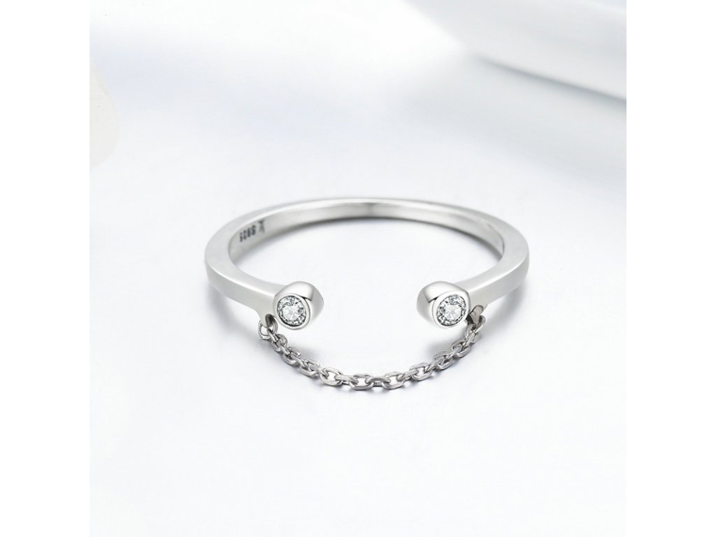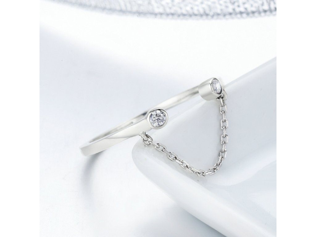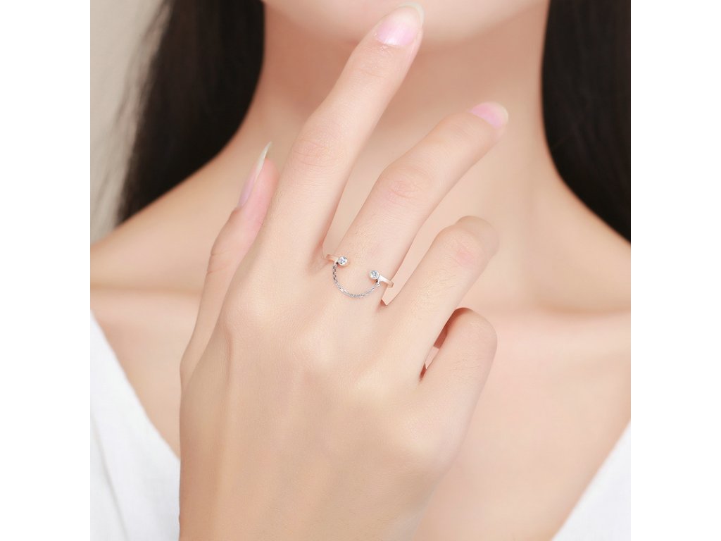 - Originálny a elegantný prsteň obohatený ručne posádzanými trblietavými zirkónmi, ktorý je spojený jemnou retiazkou. Originálny dizajn prsteňa, kvalitné spracovanie a materiál, ručne dohotovené.